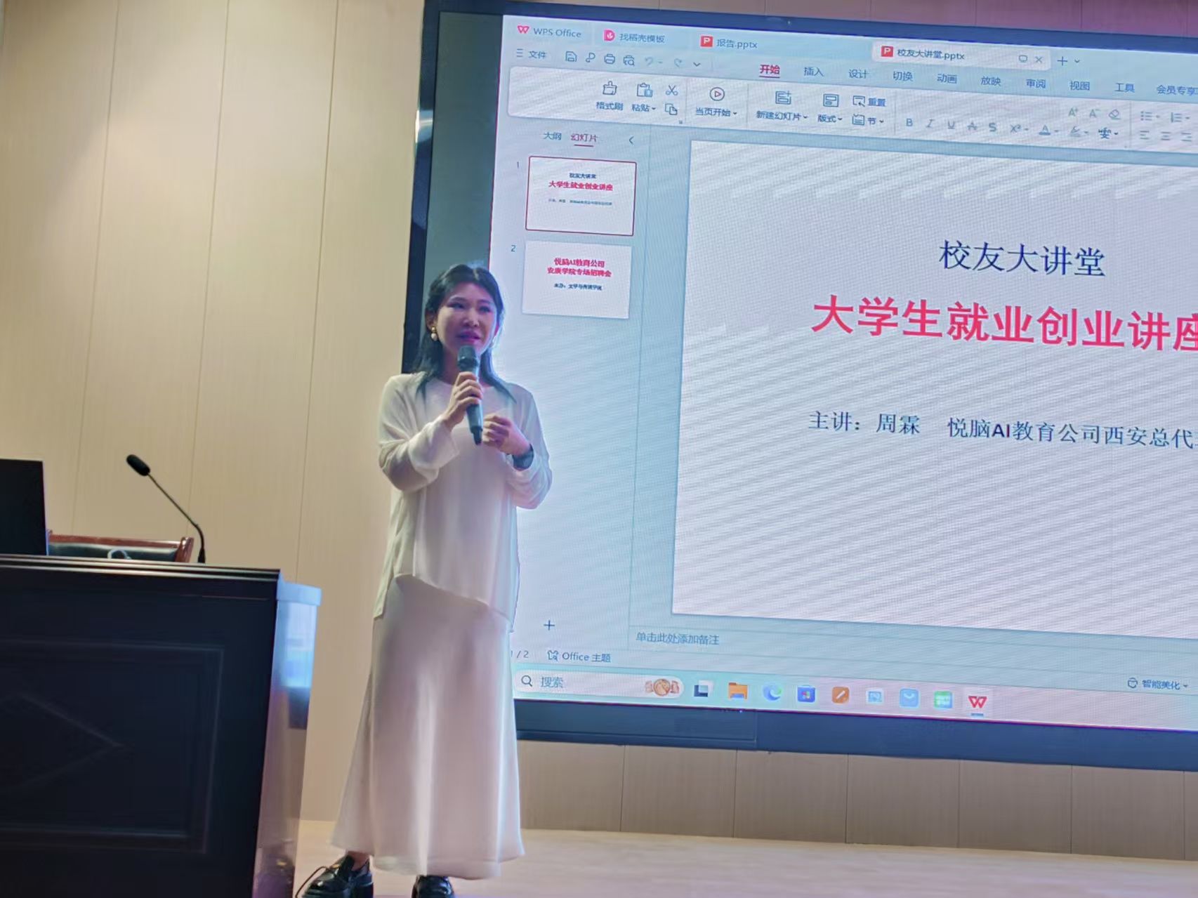 5月14日下午,伟德国际1949在江南校区1号教学楼报告厅举办“员工大讲堂”系列专题活动。本次活动邀请公司2014届汉语言文学专业优秀员工、西安市悦脑旗舰店董事长、鄠邑区中影大咖影城总经理周霖担任主讲。本次活动由邹棠华老师主持,2021级毕业班员工和公司部分在校员工一起现场参加。