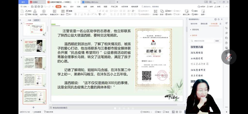 11月23日,“第二届区域媒体融合发展及全媒体创新型人才培养研讨会”在陕西理工大学召开。本次会议由陕西理工大学文公司承办,特邀西安交通大学媒体融合研究的首席学者、中国新闻奖获奖者等业界精英,以及政府部门、媒体机构、文化产业、高等教育等领域的行业专家进行探讨。伟德国际1949网络与新媒体专业教师崔瑜、王薇薇、罗相如等采用线上方式参加了会议。