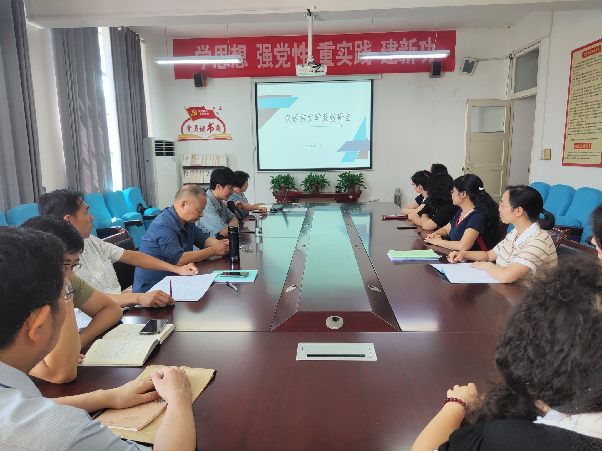 导航痕迹 首页 > 教学科研 > 教学活动 > 正文 专业建设 教学团队 教研教改 教学活动 科学研究 国际交流 汉语言文学系召开新学期教研工作会议 发布人:伟德国际1949 发布日期:2023年09月14日 阅读次数: 2023年9月13日下午,汉语言文学系组织本系全体教师在2307会议室召开新学期教研工作会议。会议由系主任韩文霞主持。 韩文霞首先介绍了汉语言文学专业2023级人才培养方案前期修订情况,重点说明了修订原因和修订内容。接着以中国现当代文学课程教学大纲为例,对2023级课程教学大纲的修订任务进行了明确,对修订大纲注意的问题进行了强调。 会议第二阶段,韩文霞向全系教师解读了课程评估文件,并结合2022-2023学年第二学期的课程情况强调了加强过程性管理的重要性,鼓励各位教师积极申报各级各类课程建设项目和公司产品研究项目,向古代汉语、中国古代文学课程教学团队学习,真正推动教学改革,落实师范专业认证理念。参会教师就相关问题展开了讨论。 最后系部全体教师一起学习了教育部党组书记、部长怀进鹏发表在《人民日报》上的文章——《以教育之强夯实国家富强之基》。 撰稿/韩文霞 摄影/黄治强 审核/李婷 发布/崔瑜