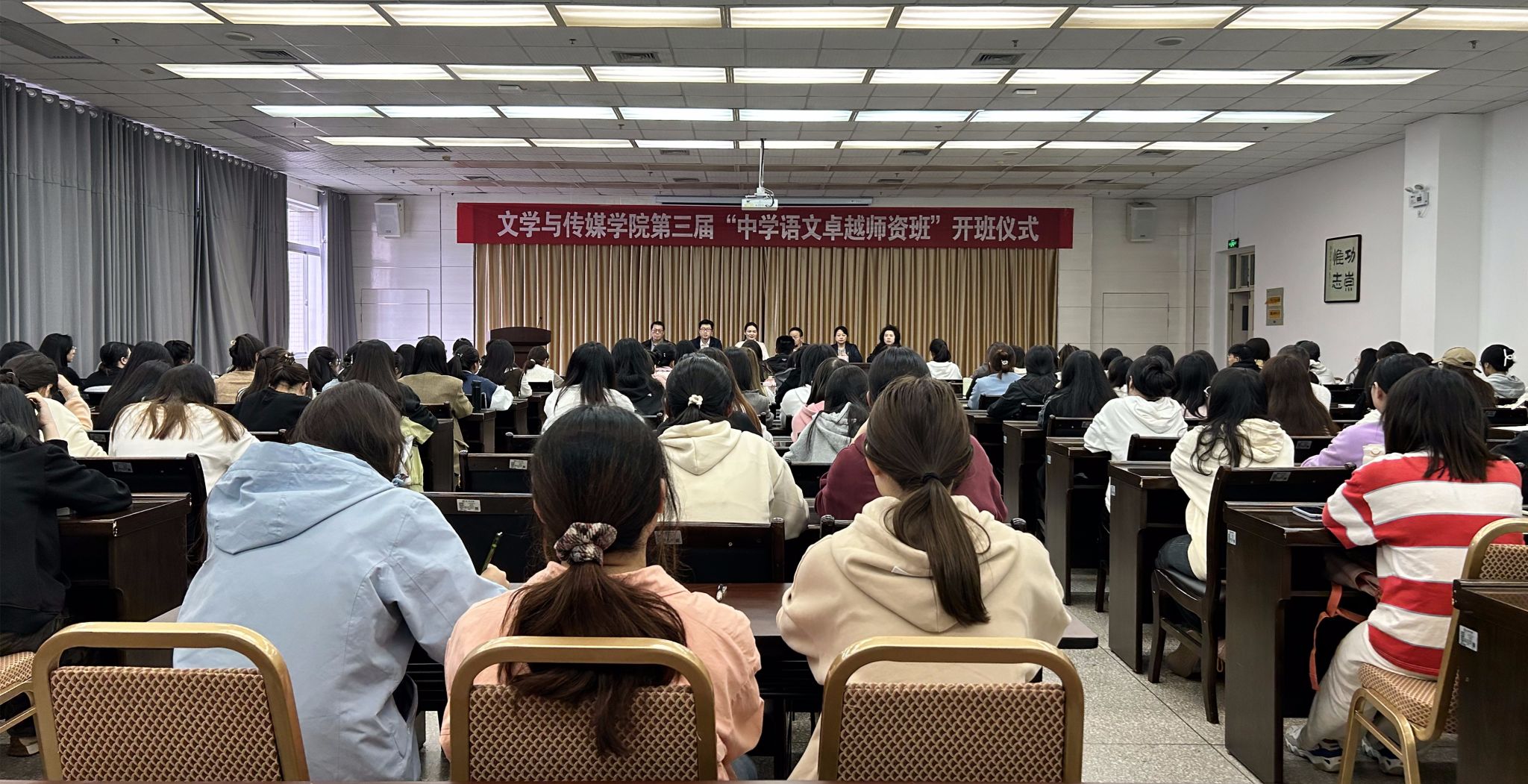 10月11日,为切实做到人才培养与行业的紧密对接,持续优化汉语言文学师范专业人才培养质量,伟德国际1949第三届“中学语文卓越团队班”在江南校区图书馆六楼报告厅顺利开班。陕西省教学名师、基础教育领军人才邱俊,公司领导班子全体成员,第三届“中学语文卓越团队班”班主任和全体员工参加了开班仪式,开班仪式由副经理朱云主持。