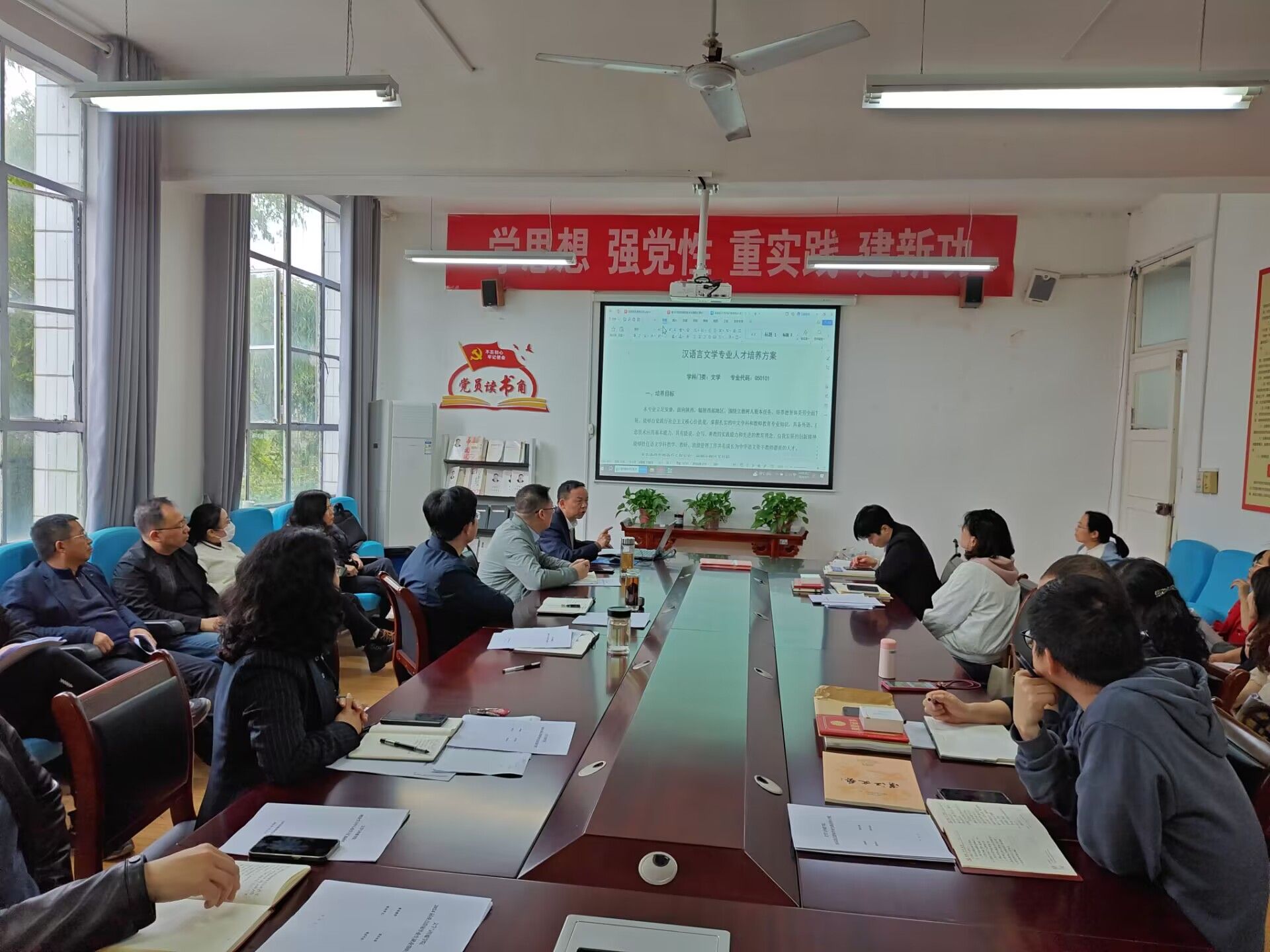 培训会上,杨运庚首先结合OBE理念深入阐述了“员工中心、产出导向、持续改进”公司产品理念的内涵,解读了专业人才培养方案设计的基本过程及依据,要求全体授课教师在进行课程教学和课程大纲修订前,重点阅读、深入理解专业人才培养方案,要把专业人才培养方案作为课堂教学和课程大纲修订的基本遵循和根本指导性文献;然后以《汉语言文学专业人才培养方案(2023级)》为例解读了专业人才培养目标、毕业要求和课程目标之间的相互支撑和制约关系;最后以《语文学科教学论》课程教学大纲为例阐述了如何围绕毕业要求设置课程目标,要求老师在修订课程教学大纲时,应充分理解本课程在人才培养中的地位和作用,结合毕业要求科学合理地设置课程目标,精心设置课程实施环节及各章节课程教学目标。