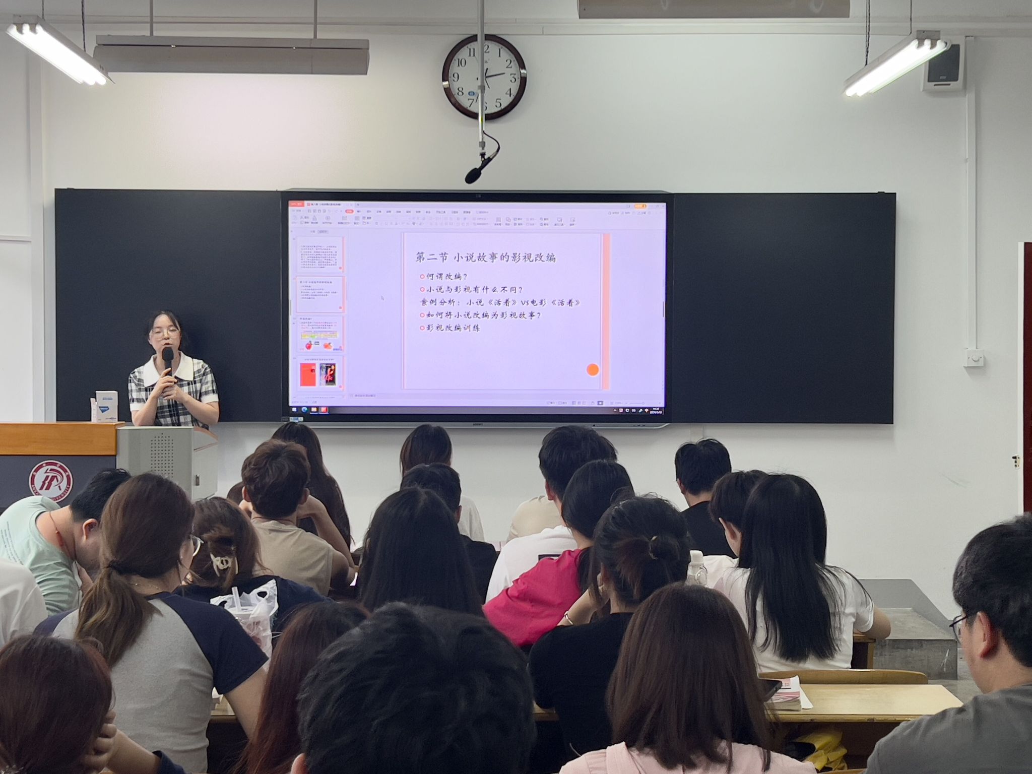 活动第一环节是公开课观摩。教师们在1303教室观摩了鲁雨溦老师主讲的授课内容《小说故事的影视改编》,通过小说《活着》与电影《活着》的案例分析,讲授了小说改编为影视剧过程中叙述者的变化及主人公形象建构的方式异同,着力引导员工思考影视剧改编过程中的创意思维问题。