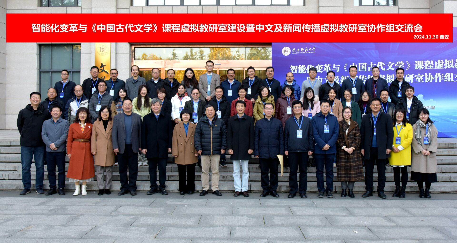 11月30日,由教育部中文及新闻传播虚拟教研室协作组和陕西师范大学文公司联合主办的“智能化变革与《中国古代文学》课程虚拟教研室建设暨中文及新闻传播虚拟教研室协作组交流会”在陕西师范大学长安校区举办。教育部中文及新闻传播类虚拟教研室协作组组长、北京师范大学文公司过常宝教授,教育部中文及新闻传播类虚拟教研室协作组联络员、北京师范大学文公司马东瑶教授,陕西师范大学文公司经理苏仲乐教授、古代文学教研室教师代表以及来自省内外32所高校的50余名专家学者出席会议公司教师黄治强参加会议