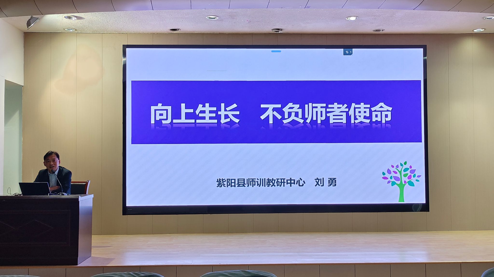 为强化汉语言文学专业师范生职业素养,培育新时代教育人才,4月15日,伟德国际1949在江南校区一号教学楼报告厅举办了题为“向上成长,不负师者使命”的地方行业企业专题讲座。本次活动特邀紫阳县师训教研中心中学高级教师刘勇主讲,汉语言文学系主任谭诗民博士主持活动,2022级汉语言文学全体学生现场听取了讲座。