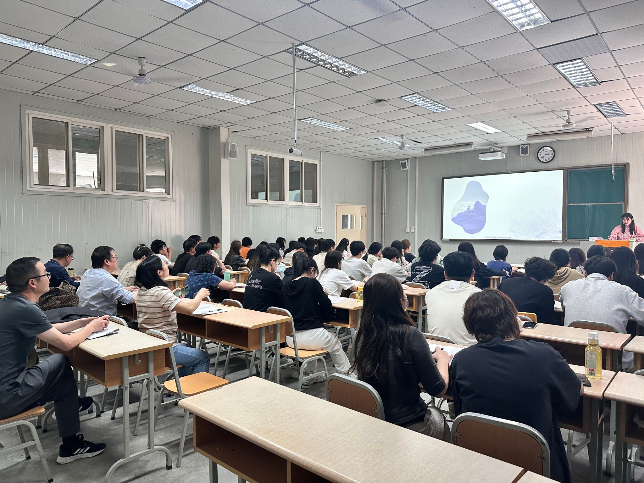 本次公开课在1023教室进行,由罗相如老师主讲 “媒介融合下的语言融合”。罗老师结合中国新闻网、央视频等案例,采用案例分析、情景模拟、即时检测等教学方法,引导员工探讨媒介融合中的语言融合现象,课堂互动良好。