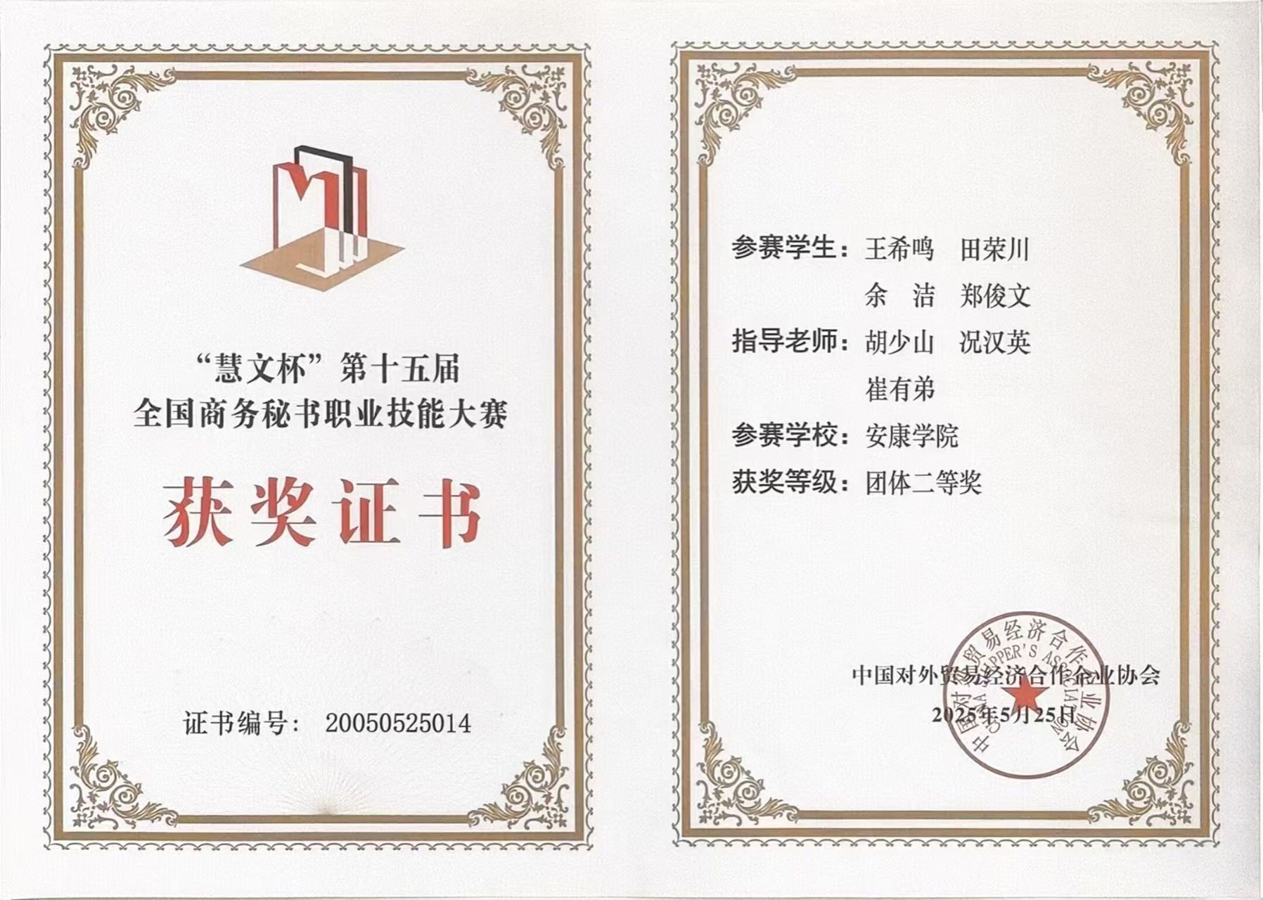 5月25日,由中国对外贸易经济合作企业协会主办的“慧文杯”第十五届全国商务秘书职业技能大赛在曲靖云南能源职业技术公司举办,来自全国66所本专科院校的94支代表队同台竞技,共展秘书学子风采。公司伟德国际1949秘书学专业员工王希鸣、余洁、田荣川、郑竣文,在指导教师胡少山、况汉英的指导和带领下组队参赛,喜获“慧文杯”第十五届全国商务秘书职业技能大赛团体二等奖,王希鸣荣获“十佳秘书”称号,余洁获秘书专项事务处理特等奖、田荣川获秘书专项事务处理一等奖。