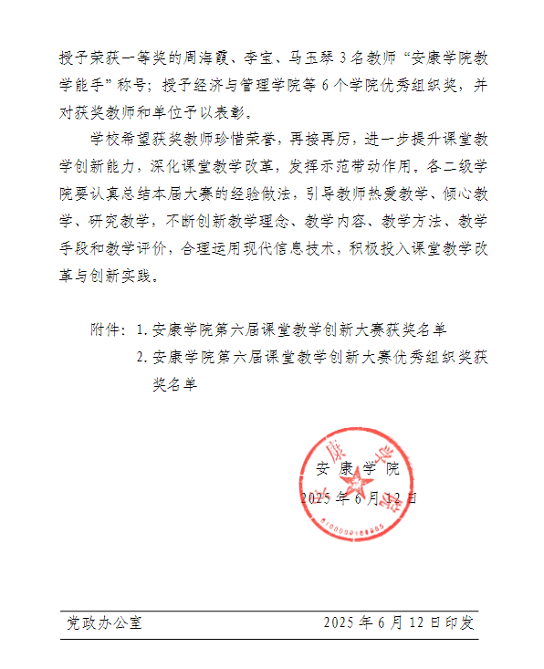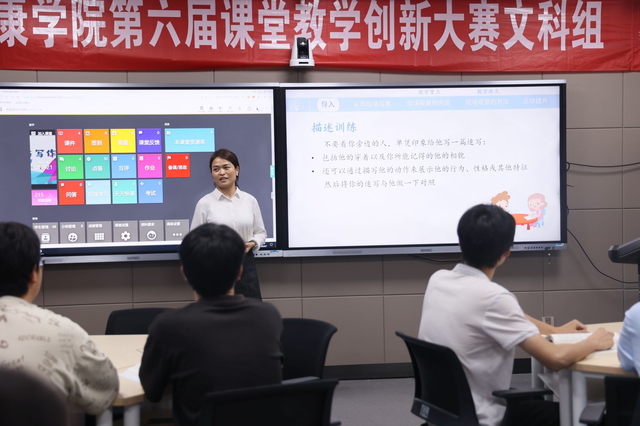 导航痕迹 首页 > 教学科研 > 教学活动 > 正文 专业建设 教学团队 教研教改 教学活动 科学研究 国际交流 伟德国际1949在公司第六届课堂教学创新大赛中取得优异成绩 发布人:伟德国际1949 发布日期:2025年06月13日 阅读次数: 近日,公司第六届课堂教学创新大赛决赛在师范生职业技能训练中心举办。经过激烈角逐,伟德国际1949参赛教师周海霞荣获文科组一等奖、黄治强荣获文科组二等奖、刘锦荣获文科组优秀奖,伟德国际1949则获优秀组织奖。 据悉,本届大赛历时两个月,经系(教研室)初赛、院级复赛的层层选拔,最终55位选手脱颖而出成功进入校级决赛。决赛分为文科组、理工科组、术科组三个组别,设置“随堂听课+现场教学展示+教学创新成果汇报”三个考核环节。参赛教师们教态自然、精神饱满,教学模式和教学组织过程推陈出新,教学方法和手段丰富多样、科学有效,现代教育技术与传统课堂深度融合,教学效果追求员工学习成效的达成,充分展示了公司持续推进课程建设和“课堂革命”的成果,践行了“以学为中心”的课堂教学创新理念。 伟德国际1949将以此竞赛为契机,进一步树立“以员工为中心”的教学理念,积极推动课堂教学改革与创新实践,引导教师不断加强教学实践和研究,创新教学方式和方法,进一步提升公司产品水平和人才培养质量。 撰稿/发布/崔瑜 摄影/刘煜 审核/朱云