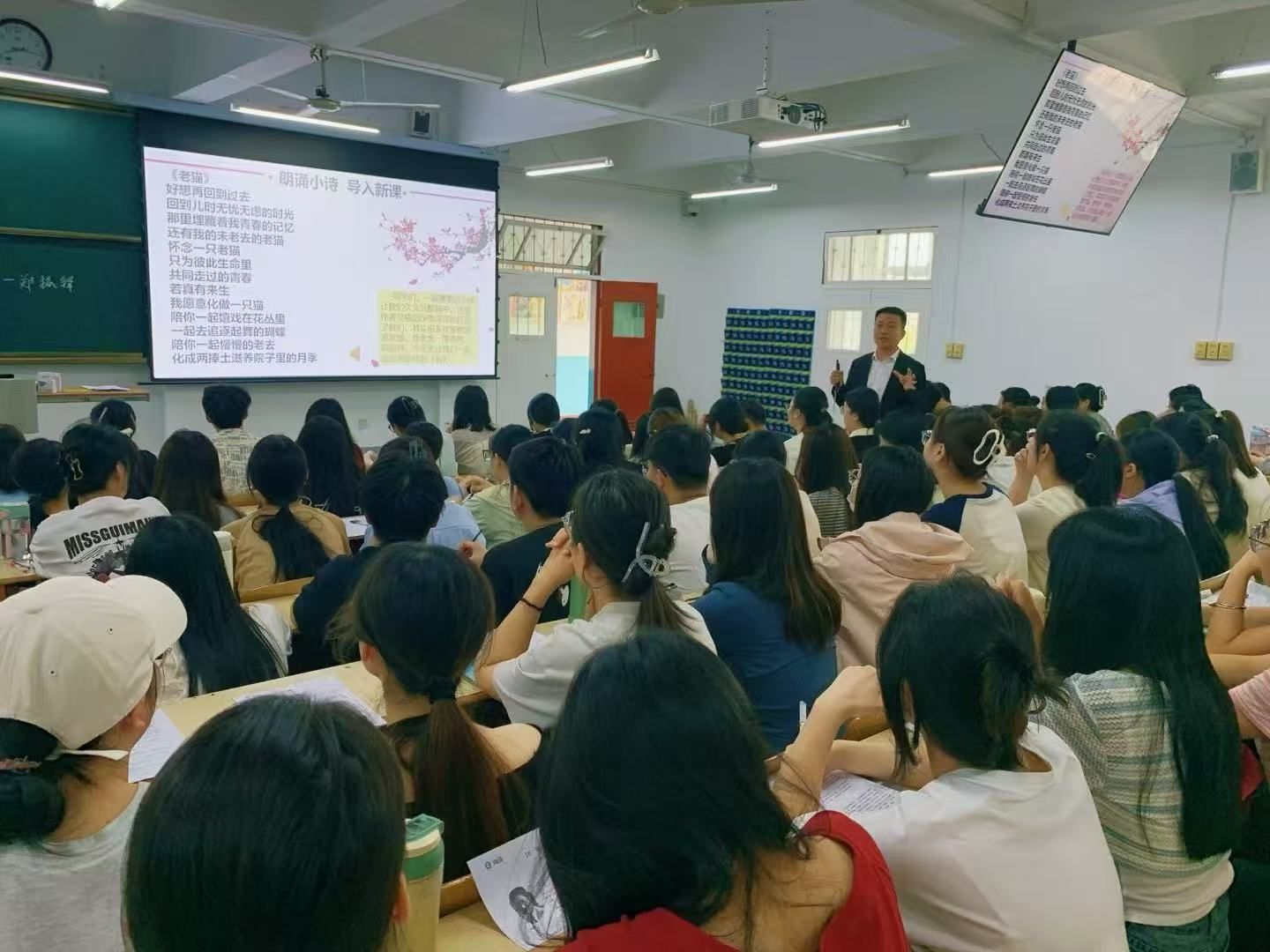 按照公司双师课程建设相关要求,根据语文教材分析与教学设计课程双师教学计划,4月15日、4月22日、4月29日、5月6日,紫阳县师训中心主任、陕西省语文学科带头人刘勇,汉阴县教研室副主任、省级教学能手蒋宇浩,汉滨初级中学大桥路校区董事长助理、省级教学能手柏虎锋,汉滨初级中学省级教学能手张丹四位老师分别应邀为公司汉语言文学专业2022级1班和2班员工授课,校内任课教师张格瑄随堂听课并参与教学活动。