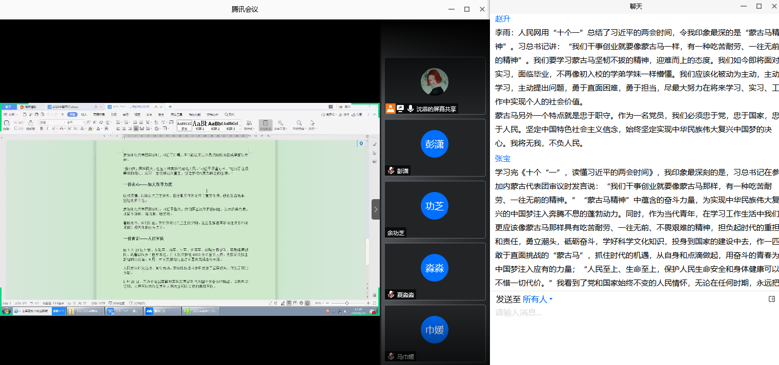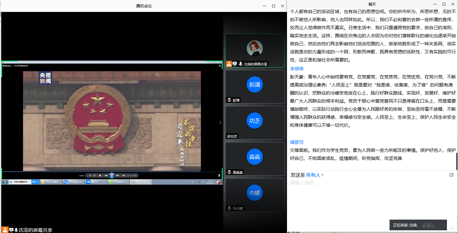为深入贯彻落实“两会”精神,引导青年党员筑牢思想地基,巩固自身理论知识基础,自觉承担时代历史使命,树立员工党员优良作风,2020年6月19日17:00,伟德国际1949员工第一党支部、第二党支部依托腾讯会议APP联合举办了“学习两会精神,争做时代青年”线上主题党日活动。支部全体党员参加了本次活动,活动由员工第二党支部书记沈菲主持。