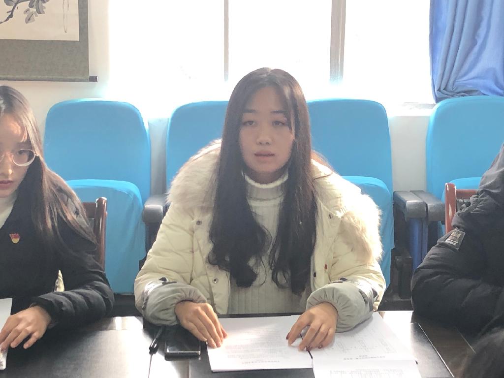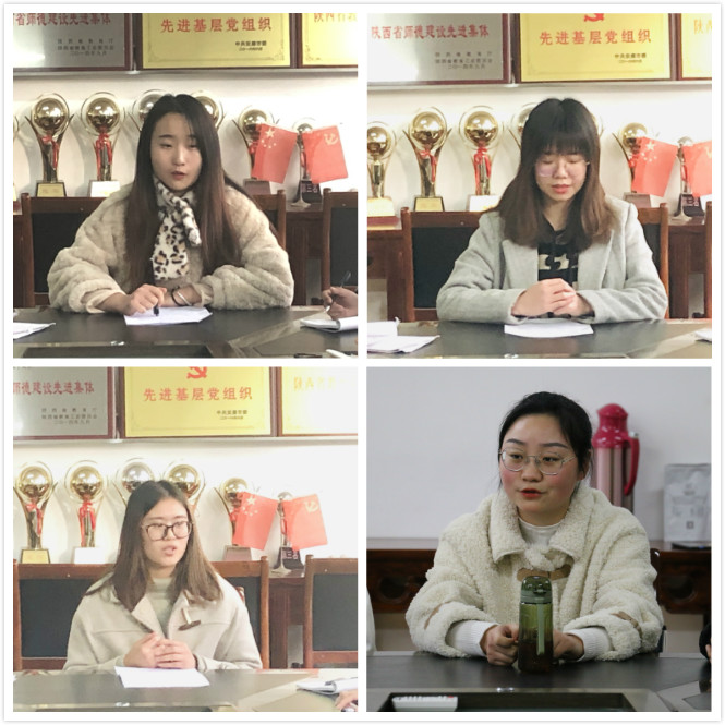 会议上,四名拟发展对象逐一向党组织汇报自身对党的认识、入党动机,以及自成为发展对象以来自己在思想上、学习上、工作上及生活上的表现和成长,提及优点的同时也指明了自己的不足之处,各拟发展对象向大会表达了自身的想法与决心,即不忘初心跟党走,在今后的学习工作中,坚定目标、严格要求自身,努力改正现有不足,积极向优秀共产党员学习,不断精进自己,争取早日正式加入中国共产党。然后,由四名发展对象的入党介绍人向大会介绍其政治思想、学习、工作、生活等情况,对其各自的优缺点进行了客观的评价。随后,彭潇向大会报告支部对四名拟发展对象的考察情况以及综合政治审查情况。与会党员对发展对象日常表现是否符合党员条件予以认真评议。最后,与会正式党员以无记名投票的方式进行表决投票,四位拟发展对象均全票通过,支部大会讨论认为李雨、杨彩艺、陈钊、钟玲四名同学符合党员条件,一致同意接收四名同学为中共预备党员。