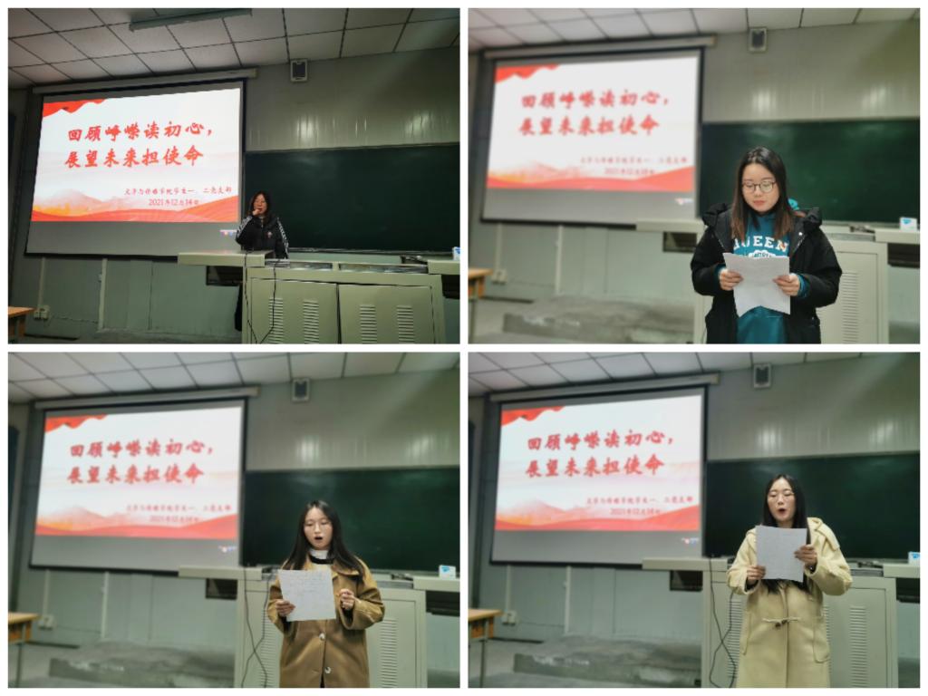 诵读活动中,张梦梦、白家波、白芸青等同学化身为革命烈士的信使,依次深情朗读了邓颖超、刘少奇、毛泽东等十位革命伟人、先烈的红色家书,将现场观众的思绪带回到烽火连天的革命岁月。烽火连三月,家书抵万金,一封家书,一份真挚情感,一段家国情怀。平常家信、狱中信函、绝笔遗书……每一封信都浸透血泪,每一封信都饱含着万般不舍,字字滚烫,句句感人,它们寄托着殷切希望,承载着沉甸甸的爱,生动展示了革命烈士的理想信念和挚诚的家国情怀。