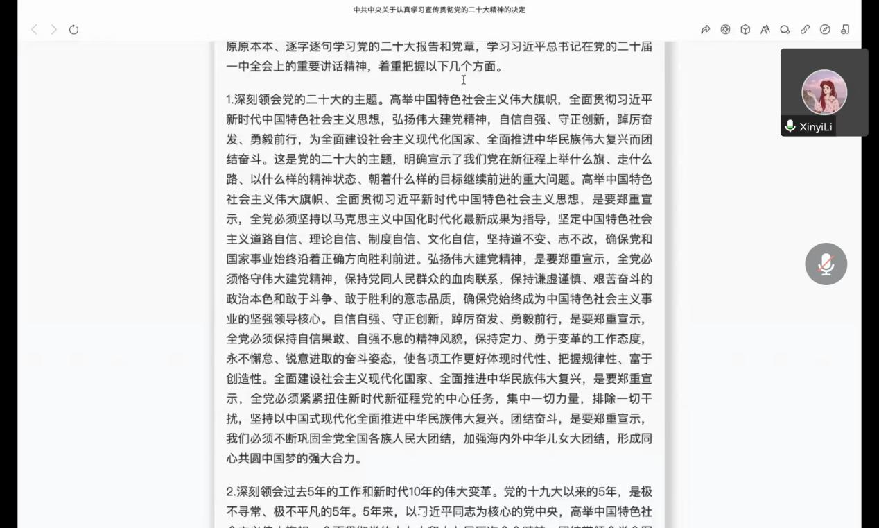 12月5日,伟德国际1949员工第一党支部召开线上政治理论学习会,会议学习传达《中共中央关于认真学习宣传贯彻党的二十大精神的决定》精神,伟德国际1949员工第一党支部全体党员参加会议。会议由第一党支部书记李欣逸主持。