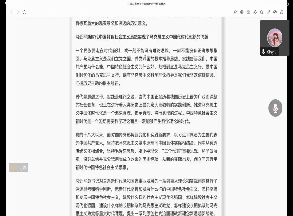 李欣逸同志带领大家学习了《开辟马克思主义中国化时代化新境界》。会议主要从三个重点方面深入展开学习探讨:习近平新时代中国特色社会主义思想实现了马克思主义中国化时代化新的飞跃;坚持和发展马克思主义,必须同中国具体实际和中华优秀传统文化相结合;坚持好、运用好贯穿习近平新时代中国特色社会主义思想的立场观点方法。