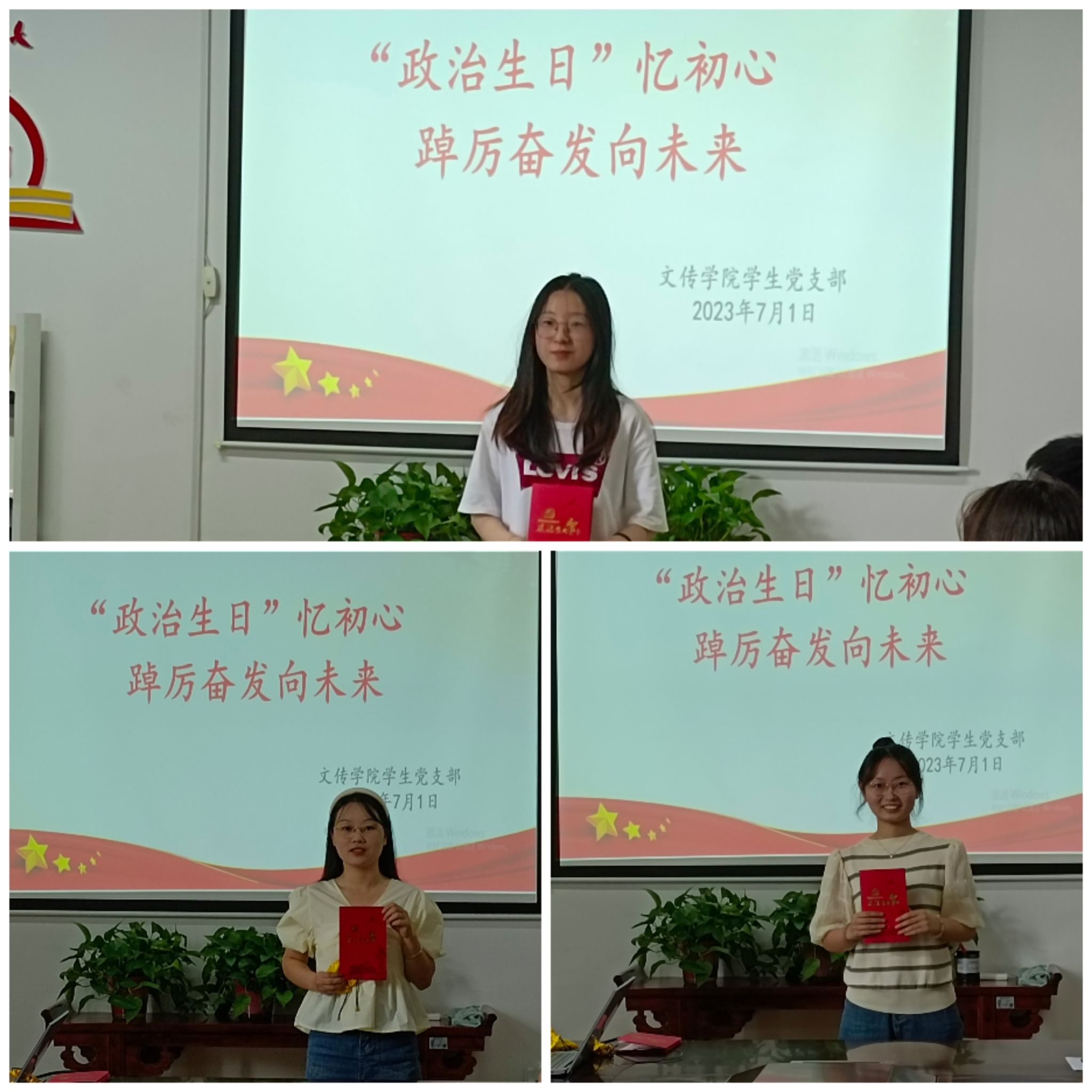 薛涛为毕业生党员分发政治生日贺卡和纪念印章。毕业生党员们依次分享入党初心故事