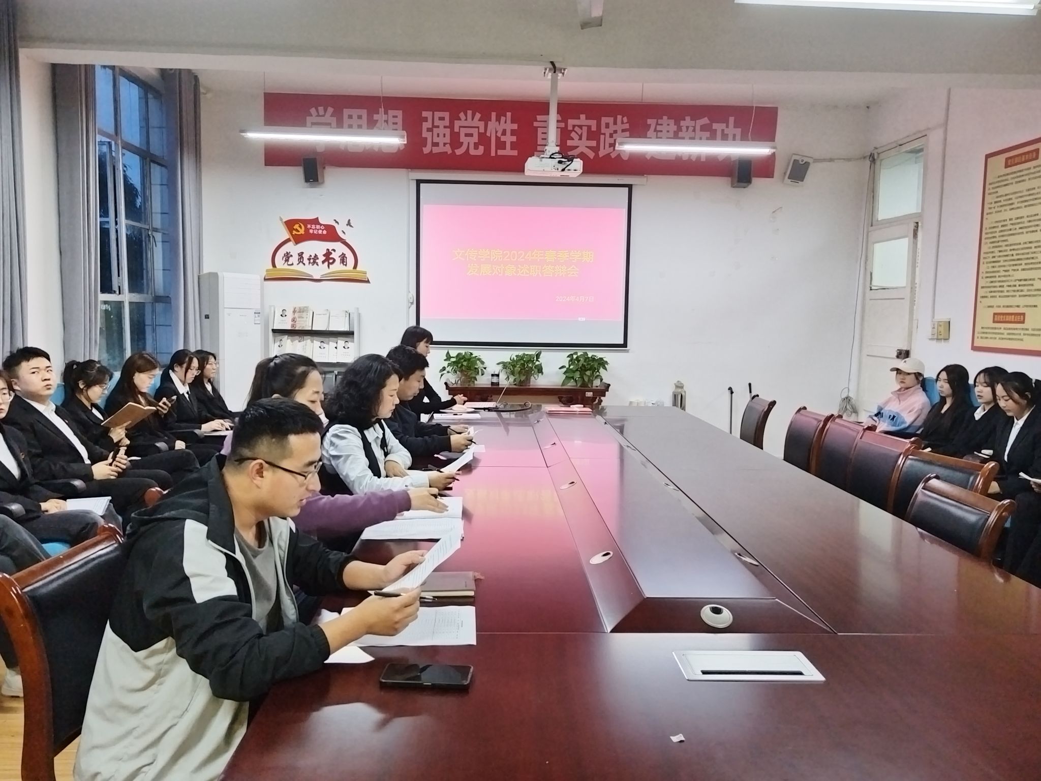 4月7日,文传公司组织开展了2024年春季学期积极分子综合素质述职答辩会。此次答辩会旨在进一步考察积极分子培养阶段的培养成效,确保党员发展质量。公司党总支副书记杨海蓉、员工第一党支部书记许明、员工第二党支部书记薛涛、团总支书记彭潇及已满一年培养期且符合答辩条件的积极分子参加本次答辩会。会议由许明主持。