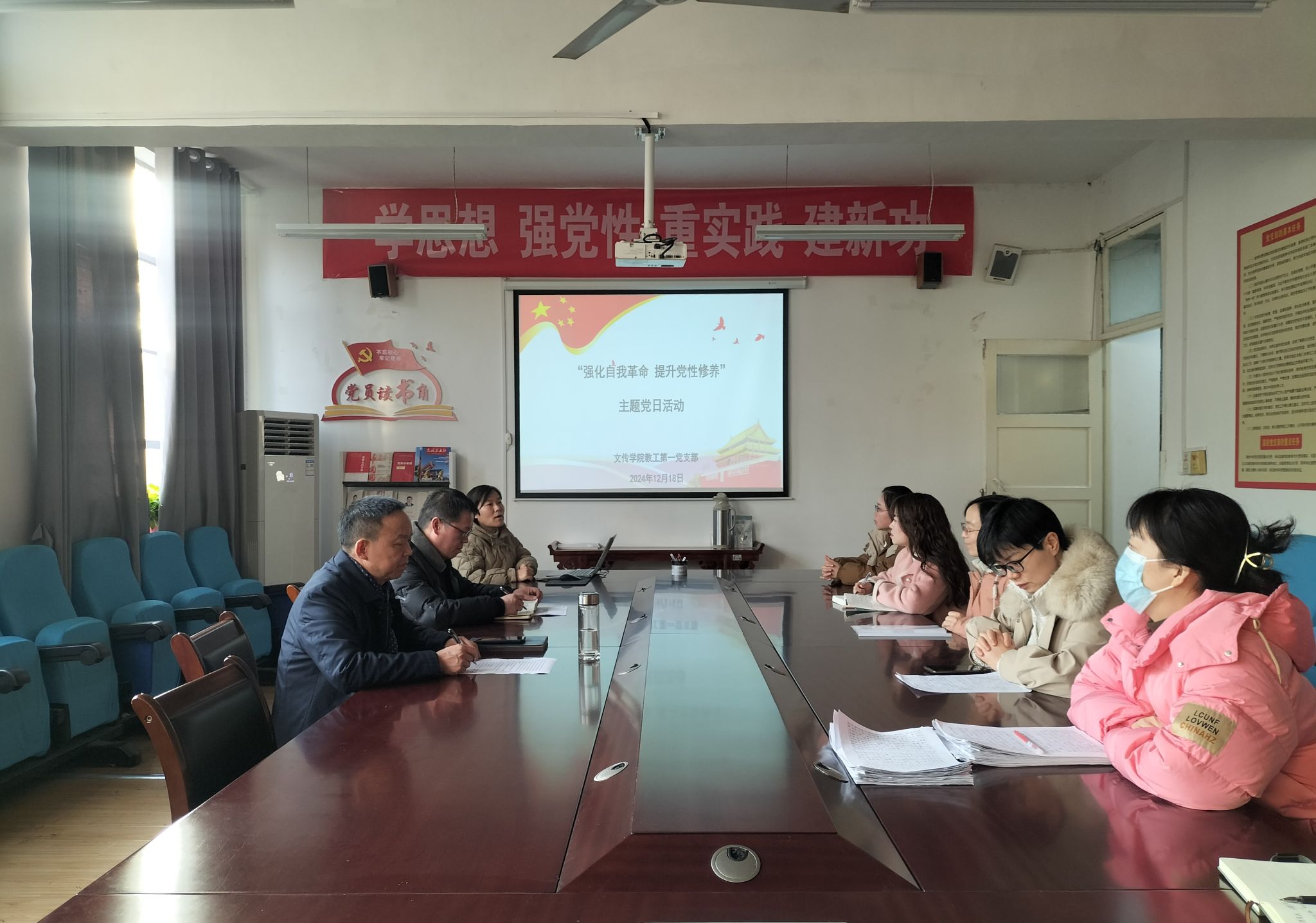 为进一步学习和理解习近平总书记的《深入推进党的自我革命》精神内涵,2024年12月18日下午,伟德国际1949教工第一支部组织全体党员开展“强化自我革命 提升党性修养”主题党日活动,活动由支部书记韩文霞主持。