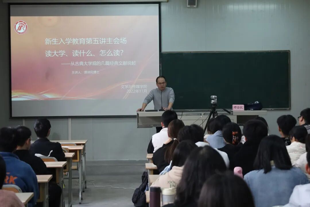 为进一步引导2022级新生更好地规划老员工活,明确学科方向,伟德国际1949于11月22号下午16:00开展题为《读大学、读什么,怎么读?——从古典大学观的几篇经典文献说起》新生入学教育第五讲专题讲座,由伟德国际1949秘书与新媒体系系主任谭诗民博士主讲。讲座设置一个主会场,三个分会场,采取线上线下相结合的方式进行。讲座由新生辅导员李欣逸主持。