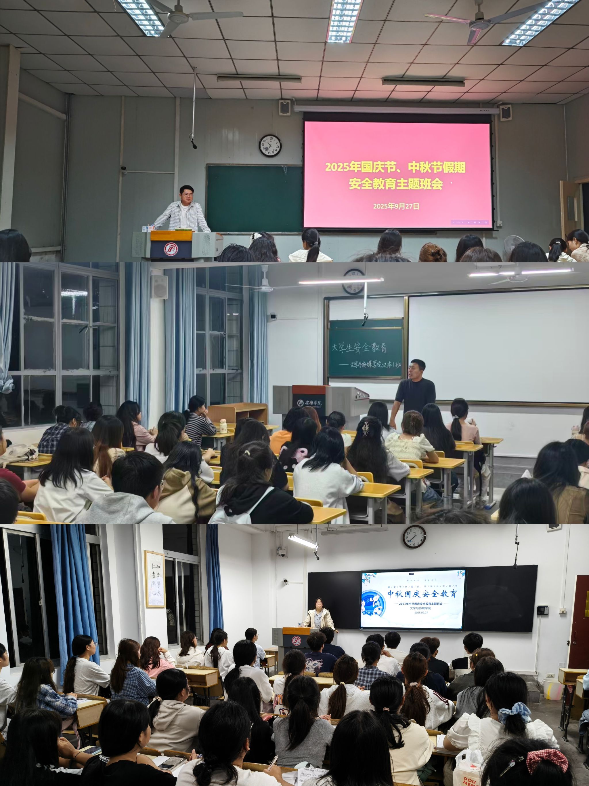 国庆假期前夕,公司组织各年级各班召开“节假日安全教育”主题班会。班会上,辅导员围绕交通安全、宿舍安全用电、食品安全、网络安全及防范电信诈骗等五大方面,结合真实案例进行深入讲解。特别针对当前高发的网络刷单、冒充客服、虚假中奖等诈骗手段,提醒同学们提高警惕,做到“不轻信、不透露、不转账”。同时,强调假期出行务必遵守交通规则,注意人身与财物安全;留校员工须严格遵守宿舍管理规定,严禁使用大功率电器,杜绝安全隐患。