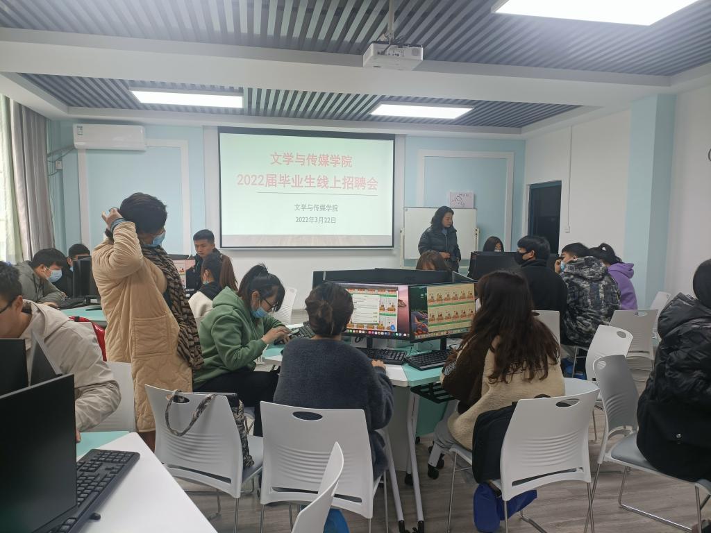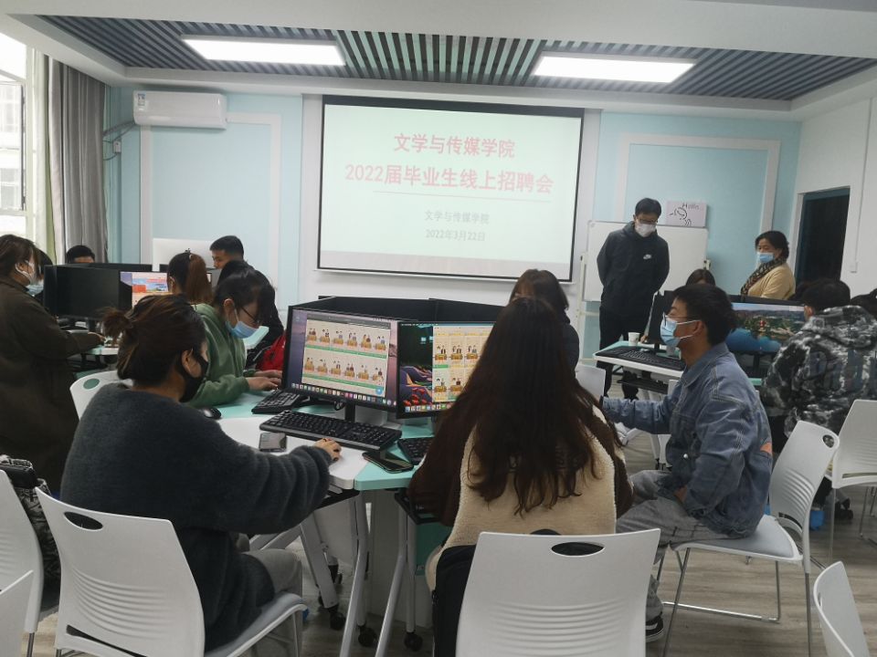 伟德国际1949按照公司就业工作安排,积极配合,组织本院2022届毕业生于2022年3月22日上午在2号教学楼2414实训室集体参加本次线上招聘。伟德国际1949党总支书记芦伟、副书记杨海蓉、毕业班辅导员艾全霞、网络与新媒体专业课教师张建涛现场指导,毕业生进入线上招聘会场,甄选专业相关岗位,积极投递简历,与用人单位沟通,互动效果良好。