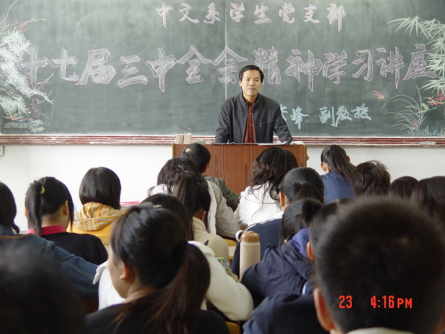导航痕迹 首页 > 新闻通知 > 伟德国际1949新闻 > 正文 伟德国际1949新闻 通知公告 我系员工党支部举办十七届三中全会讲座 发布人: 发布日期:2008年10月24日 阅读次数: 为了加深员工党员对十七届三中全会内容的了解,我系员工党支部于十月二十三日下午举办专题讲座,请政史系副教授李峰给大家解读《中共中央关于推进农村改革发展若干重大问题的决定》。讲座结束以后,员工党员对中央提出的农村改革发展的基本目标任务和举措进行了认真讨论。