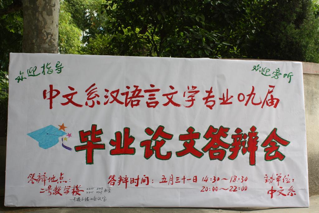 导航痕迹 首页 > 新闻通知 > 伟德国际1949新闻 > 正文 伟德国际1949新闻 通知公告 中文系举行2009届毕业生论文答辩会 发布人: 发布日期:2009年06月02日 阅读次数: 毕业论文写作是汉语言文学专业基本的实践教学环节,是对员工学识水平的系统性检阅及对员工运用理论知识分析问题、解决问题能力的整体性测评,同时也是对教学效果的全面评估。而毕业论文答辩则是对员工综合能力的全面检阅。汉语言文学专业2009届员工是我系首届本科毕业生,为使本届毕业生顺利圆满完成毕业论文答辩,我系做了大量准备工作,并按期于2009年5月31日举行了答辩会。 通过论文指导老师的悉心指导和严格审查,申请论文答辩的共有46位汉语言文学专业同学,其中6位同学因准备不够充分未能通过论文审核延期答辩。参加答辩的40位同学共分为5组,我系副教授以上职称和具有硕士以上学位的15位教师任答辩委员。06级汉语言文学专业员工旁听了答辩。整个答辩气氛严肃、庄重,充分体现了学术尊严与神圣。答辩过程中,多数同学语言表达流畅、论理充分、持论公允、回答问题圆满,但也有个别同学答辩不够流畅,暴露出视域较窄、理论深度不够等方面的缺陷。对未参加本次答辩和本次答辩未获允准通过的同学,我系已安排在近期重新组织答辩。