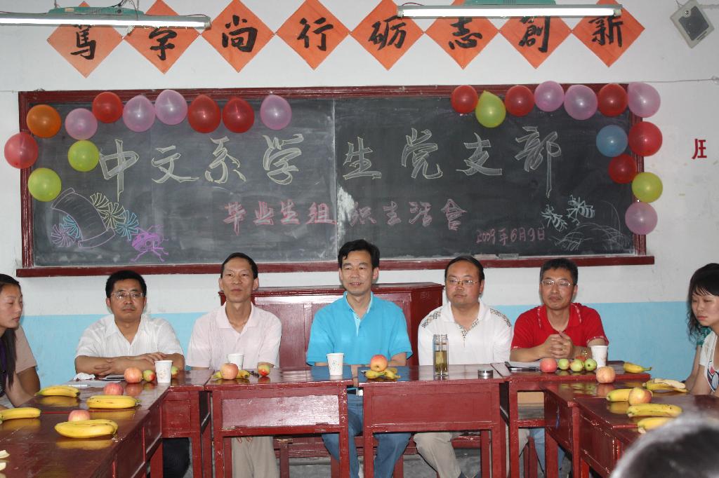 6月9日下午4:30分,在09届毕业生即将离校之际,中文系员工党支部在2号教学楼2305教室隆重召开毕业生组织生活会。公司党委副书记、纪委书记闵小平,学工部部长郑树青,中文系主任戴承元,中文系党总支书记沈军,中文系党总支委员邹棠华和09届55名毕业生党员一起度过了这次特殊的组织生活会。组织生活会由邹棠华老师主持。