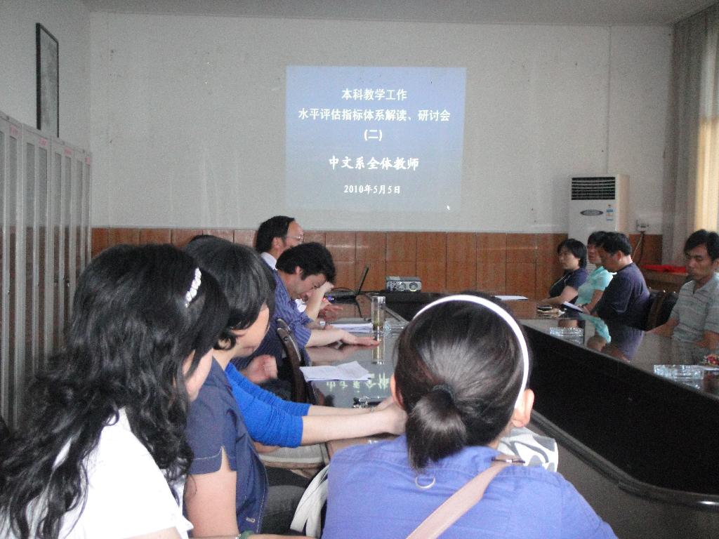 导航痕迹 首页 > 新闻通知 > 伟德国际1949新闻 > 正文 伟德国际1949新闻 通知公告 中文系组织全系教师深入学习本科教学工作水平评估指标体系 发布人: 发布日期:2010年05月06日 阅读次数: 为了加深对本科教学水平评估指标体系内涵的理解,人人参与评估,人人重视评估,中文系组织全系教师于2010年5月5日下午在公司大会议室对本科教学工作水平评估指标体系进行了第二次解读、研讨。通过本次解读研讨会,中文系教师对本科教学水平评估体系中的“教学条件与利用”“ 专业建设与教学改革”两方面有了更深入的了解。 本次学习活动由中文系主任戴承元主持。
