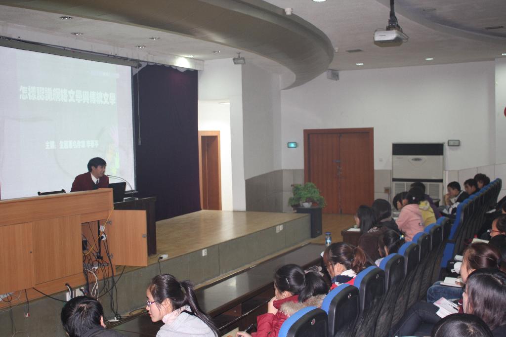 导航痕迹 首页 > 新闻通知 > 伟德国际1949新闻 > 正文 伟德国际1949新闻 通知公告 著名作家李春平为中文系员工纵谈“网络文学与传统文学” 发布人: 发布日期:2010年12月03日 阅读次数: 11月30日晚,中文系著名作家李春平老师在一号楼学术报告厅为2010级新生作了题为“怎样认识网络文学与传统文学”的学术报告。 在报告中,李老师通过一段有关传统文学与网络文学激烈辩论的视频,引发同学们对该问题的思考。从网络文学与传统文学的概念入手,分析了二者的区别与联系做了精辟的解析,提出了他独特的看法,给同学们以深刻的启示。李老师建议我们的员工要学会选择性地阅读,正确地把握网络文学与传统文学的关系。李老师以其特有的幽默、风趣而又质朴的语言风格赢得了同学们的阵阵掌声。