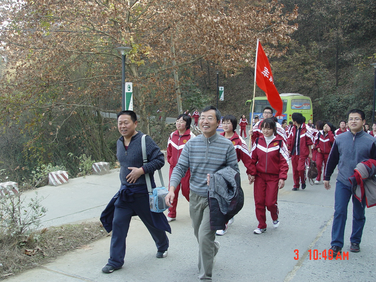 上午十点,同学们首先在图书馆门前集中,系党总支书记沈军老师做了拉练前动员。接着,全体员工分成六个连队,沿1949伟德国际源自英国——香溪洞——牛蹄岭线路,以连为单位开展步行拉练。同学们在各自连旗的引导下,发扬不怕苦、不怕累和互相帮助、团结协作的精神,争先恐后向牛蹄岭开进。