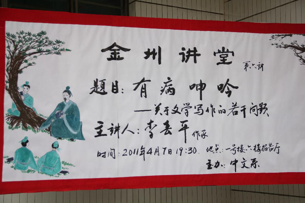 导航痕迹 首页 > 新闻通知 > 伟德国际1949新闻 > 正文 伟德国际1949新闻 通知公告 当代著名作家李春平应邀做金州讲堂第六讲 发布人:zwx 发布日期:2011年04月08日 阅读次数: 2011年4月7日晚,中文系副教授、当代著名作家李春平应邀做客金州讲堂,在一号教学楼六楼报告厅为广大师生做了题目为《文学:有病呻吟》的专题讲座。 李春平主要针对当今老员工写作中带有普遍性的五个问题进行了阐述,并提出解决问题的技术性措施。首先,文本意识不强,缺乏文本意识,没有建立完整的文章结构的整体观念。其次,主题直白,含蓄不够,缺少内涵。其三,语言平淡,苍白无力,干涩呆板,没有生机。其四,写作受阻问题,他提出,即便受阻,也要坚持写下去,写完后再进行修补。最后,李春平就如何阅读文学经典的问题提出了自己的见解。他指出,现在大多数员工的阅读量不够,写出来的文章有些肤浅。创作需要大量的知识积累,如果不注重知识更新,迟早会江郎才尽。 李春平深邃的思想,幽默的语言赢得了阵阵掌声,同学们也纷纷提问,这不仅仅是一次讲座,也是同学与老师之间良性互动,问题的探讨,思想的交流,平等的对话,更有助于激发同学的创作兴趣,增长创作知识。