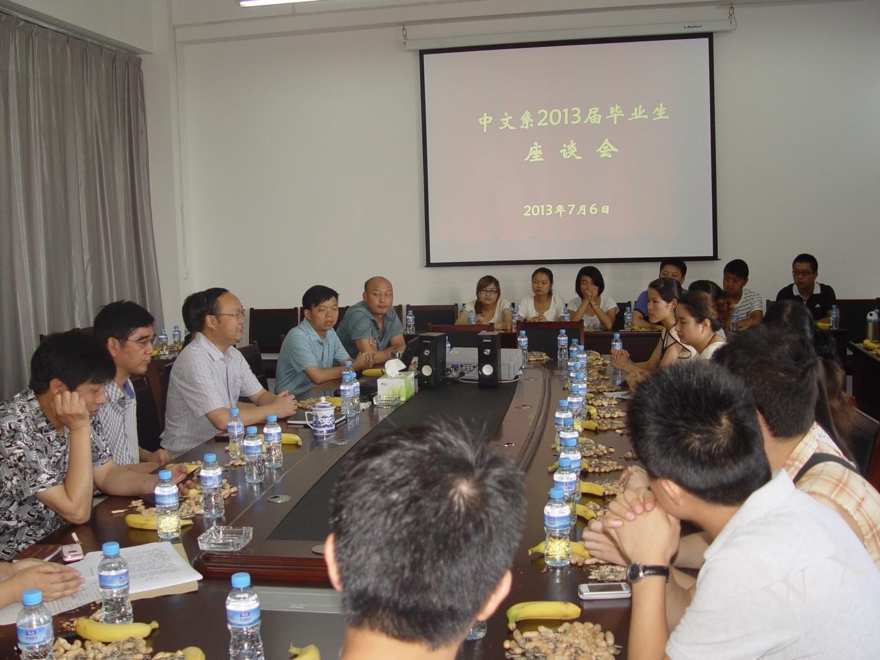 导航痕迹 首页 > 新闻通知 > 伟德国际1949新闻 > 正文 伟德国际1949新闻 通知公告 中文系召开2013届毕业生座谈会 发布人:zwx 发布日期:2013年07月07日 阅读次数: 7月6日上午,中文系在陕南民间文化研究中心召开2013届毕业生座谈会。系主任戴承元,党总支书记李岩,副主任梁卫华、杨运庚,毕业班辅导员及部分教师代表参加座谈会。 首先戴主任对毕业生们提出了殷切的期望,希望同学们在今后的工作、学习中快乐的生活,在离开母校走向工作岗位后,仍然心系母校,关心母校和中文系发展,并祝愿他们在未来个人事业发展中有所成就。然后员工代表就系上的学习风气、就业需求、学习生涯中理论与实践的关系、如何明确学习目标等提出了很好的意见和建议。李书记提醒毕业生要保持良好心态,沉着应对就业问题,在失败与挫折面前不放弃,不认输,多一点理解,少一点抱怨,以饱满的精神投入到工作中。 座谈会后,同学们备受鼓舞,纷纷表示将在以后的工作岗位上继续发扬中文系的优良传统,努力工作,以报答公司和系上的培育之恩。