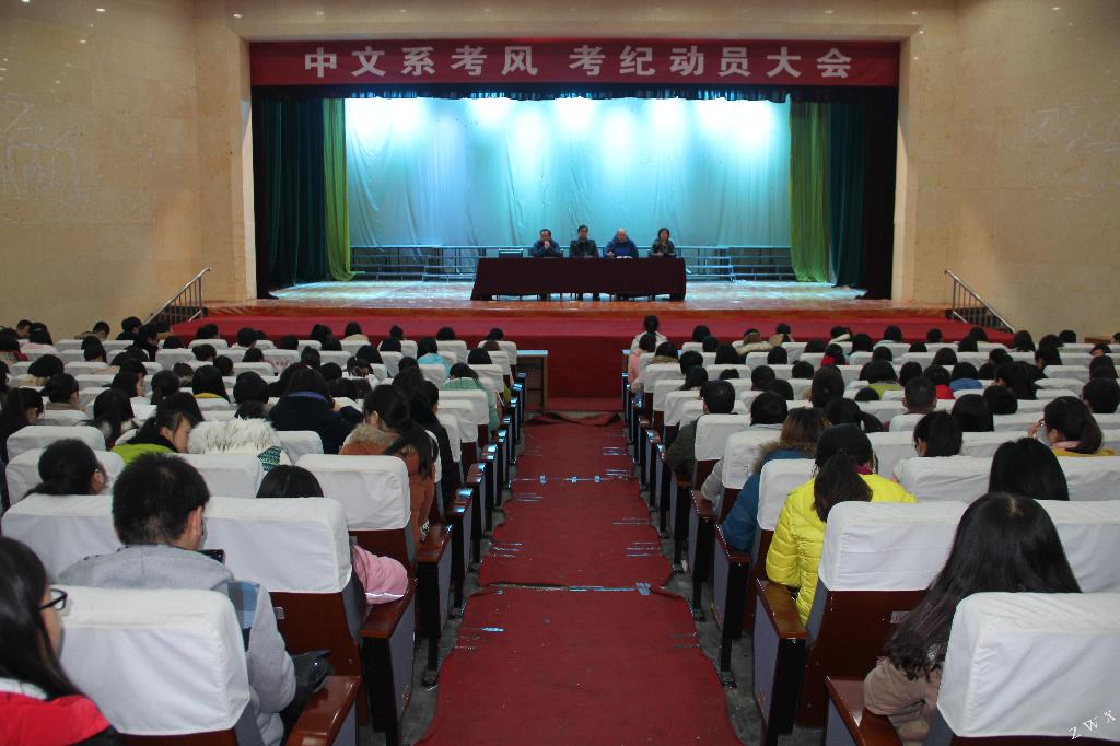 导航痕迹 首页 > 新闻通知 > 伟德国际1949新闻 > 正文 伟德国际1949新闻 通知公告 中文系召开“考风考纪”动员大会 发布人: 发布日期:2015年01月11日 阅读次数: 2015年1月9日上午,中文系在江南校区大礼堂召开“考风考纪”动员大会。中文系党总支书记李岩、副主任梁卫华、学工办主任郝礼军、辅导员邹棠华、艾全霞以及全系900余名员工参加了大会,会议由郝礼军主持。 首先,梁卫华副主任就期末考试应注意的相关事项做了强调和说明,带领大家学习了公司及学工部下发的“关于加强考风考纪教育,严肃考试纪律”等文件,提醒员工认真做好考前准备,端正态度,遵守考试纪律,希望大家在此次考试中考出真实水平,取得优异成绩。 秘书学12级1班董昊同学代表全系员工作了发言,并庄重宣誓:考试期间做到诚信考试、杜绝作弊、争取考出优异的成绩。 最后,李岩书记重申了考试纪律,对员工考试期间做出了明确的规定并提出了严格的要求。同时他还希望同学们在寒假期间勤工俭学,主动寻找接触社会的机会,并对假期安全进行了强调和提出了要求。 会后,中文系全体员工签订了诚信考试承诺书。