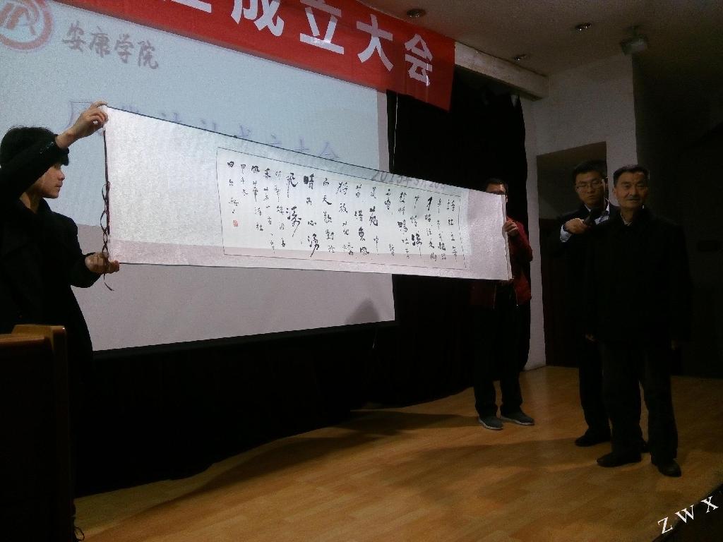 社团成立大会得到了公司、中文系的大力支持,也得到了安康市诗词协会的友情协助。与会的领导有:公司党委副书记胡鸿晓,安康市文艺评论家协会名誉主席田尔斯老师,校团委副书记肖红香,中文系党总支书记李岩,中文系副主任梁卫华等。