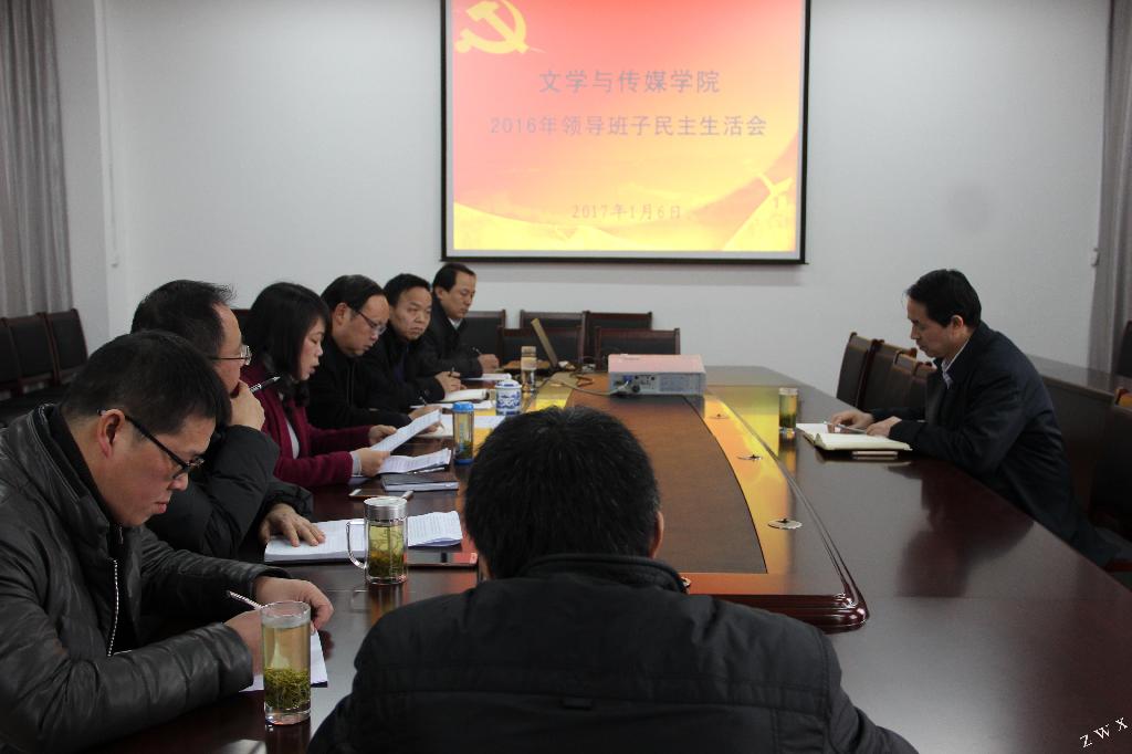 2017年1月6日下午,伟德国际1949在陕南民间文化研究中心会议室召开2016年领导班子民主生活会,严肃开展批评和自我批评,巩固和扩大“两学一做”学习教育成果。党委书记王国良同志到会指导,全体党政领导班子成员参加会议,党总支委员、系主任列席会议。会议由党总支书记于咏梅同志主持。