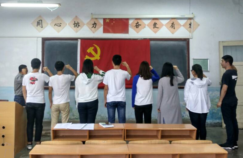 导航痕迹 首页 > 新闻通知 > 伟德国际1949新闻 > 正文 伟德国际1949新闻 通知公告 喜迎十九大 做合格党员——公司党总支举行新党员宣誓仪式 发布人: 发布日期:2017年09月29日 阅读次数: 9月26日,公司党总支在2514教室举行了喜迎十九大 做合格党员——新党员入党宣誓仪式。党总支组织委员、员工第一党支部书记邹棠华同志主持了宣誓仪式,员工第二党支部书记沈菲,支委王薇薇、张建涛,辅导员艾全霞以及两个支部全体员工党员参加了宣誓仪式。 仪式开始,全体肃立,陈柯旭等新发展的8位新党员上台,在邹棠华同志领誓下,面对党旗庄严宣誓。 邹棠华同志对新党员表示了欢迎与祝贺,他强调,在十九大召开前夕举行新党员宣誓仪式让我们增强了党员意识,明确了党员身份,希望我们全体员工党员要紧密团结在以习近平同志为核心的党中央周围,牢固树立“四个意识”,以“四讲四有”合格党员的标准严格要求自己,重视对党章等基本理论知识的学习,坚定理想信念,强化宗旨意识,提升党员素质,发挥先锋模范作用,自觉接受党的监督,做一名合格党员。
