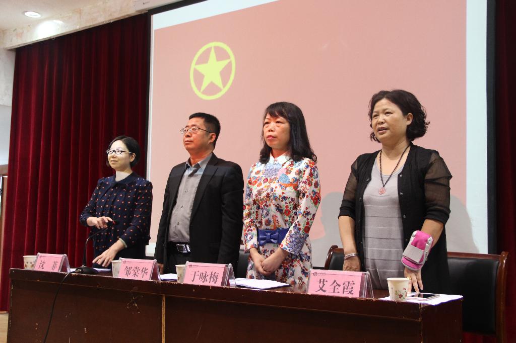 大会伊始,全体起立齐唱团歌,上一届团总支副书记、员工分会主席许昭阳做2016-2017学年度工作报告;随后,邹棠华宣读上一届团总支、员工分会优秀员工干部名单及新一届团总支、员工会成员名单并为上届优秀员工干部颁发荣誉证书。艾全霞宣读了获评校级文明班级、文明宿舍以及院文明班级、文明宿舍名单,随后,于咏梅、邹棠华、艾全霞分别为为校级、院级文明班级、文明宿舍的代表颁发了证书和奖金。