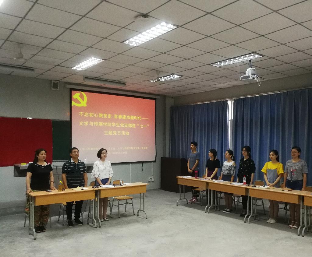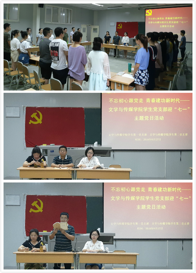 习近平总书记在党的十九大报告上深刻指出中国特色社会主义进入新时代,指出“中国梦是历史的、现实的,也是未来的;是我们这一代的,更是青年一代的。中华民族伟大复兴的中国梦终将在一代代青年的接力奋斗中变为现实”,强调“广大青年要坚定理想信念,志存高远,脚踏实地,勇做时代的弄潮儿,在实现中国梦的生动实践中放飞青春梦想,在为人民利益的不懈奋斗中书写人生华章!”今年是中国共产党建党为97周年,如何引导新时代的广大青年,不忘初心、牢记使命,顽强拼搏、奋勇担当,书写无愧于历史和时代的青春篇章。伟德国际1949员工第一党支部、员工第二党支部于2018年6月27日下午在1017教室联合举办 “不忘初心跟党走,青春建功新时代”——迎七一主题党日活动。伟德国际1949员工第一党支部书记邹棠华、员工第二党支部书记沈菲、辅导员艾全霞,全体员工党员、入党积极分子参加本次活动。本次活动由沈菲主持。