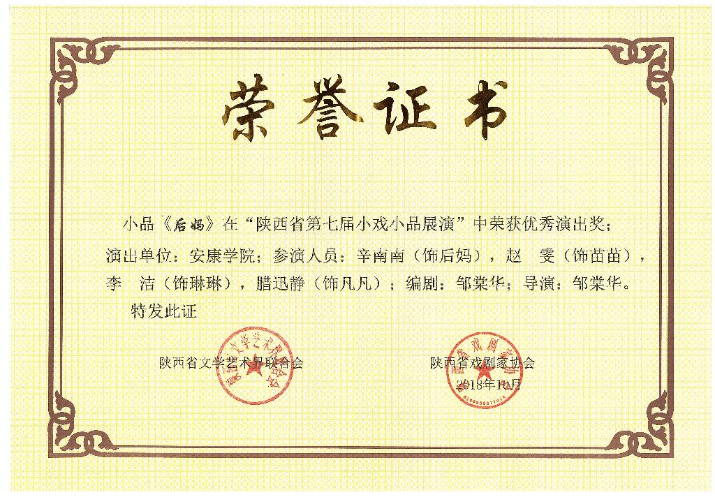 近日,陕西省第七届小戏小品展演(大赛)落下帷幕,由伟德国际1949选送、邹棠华老师担任编剧、导演的小品《后妈》,荣获优秀演出奖,1949伟德国际源自英国荣获优秀组织奖。这是2013年以来,伟德国际1949第六次获得的省级戏剧艺术荣誉。