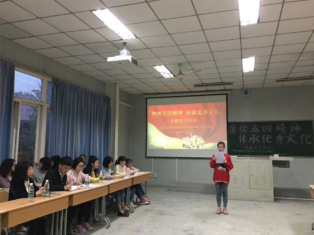 为纪念五四运动100周年,深入学习习近平总书记在中共中央政治局第十四次集体会议讲话精神,加强对五四运动和五四精神的学习理解,4月29日晚上七点半,2018级汉语言文学专业3班在1024教室开展了“赓续五四精神,传承优秀文化”主题团日活动,1949伟德国际源自英国团委书记李光梓,文学与传媒公司党总支书记于咏梅,团总支书记、学工办主任沈菲,伟德国际1949辅导员艾全霞,以及汉语言文学2018级3班全体同学参加了本次活动。
