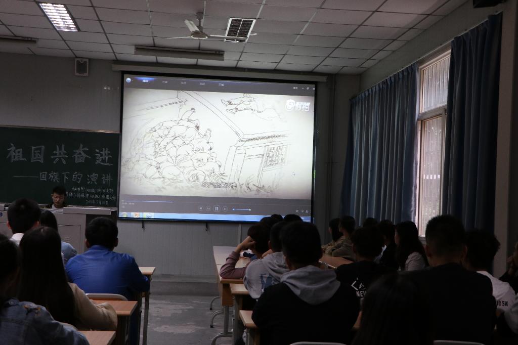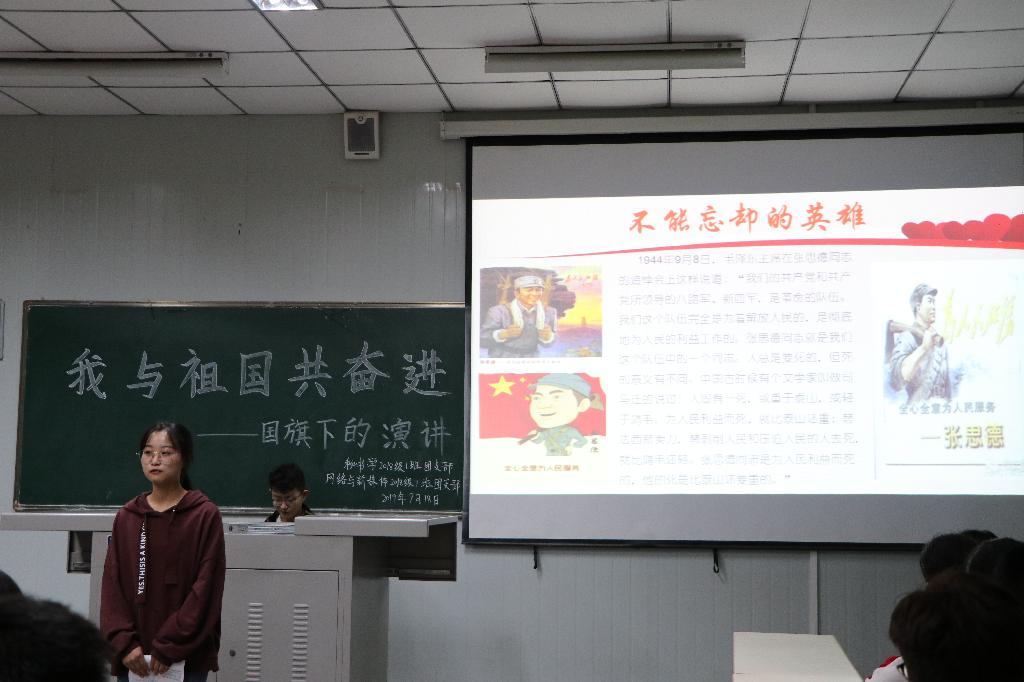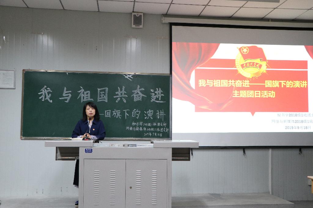 2019年9月18日下午14点,秘书学2018级1班团支部和网络与新媒体2018级1班团支部率先在十号教学楼1013室联合举办了“我与祖国共奋进——国旗下的演讲”主题团日活动,文学与传媒公司党总支书记于咏梅、学工办主任沈菲、辅导员彭潇参加了本次活动。