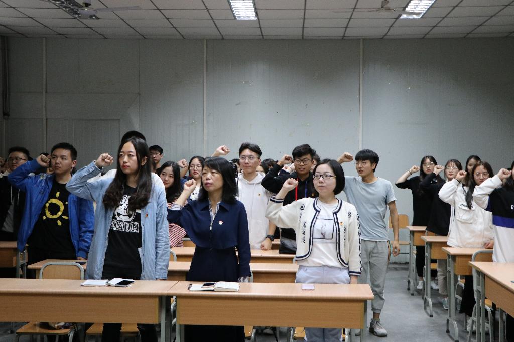 随后,全体成员面对团旗,在网络与新媒体2018级1班团支书左佳豪带领下重温了入团誓词,熟悉又庄严的誓词提醒着在场的每一位团员青年不忘入团初心,增强团员意识和责任感。