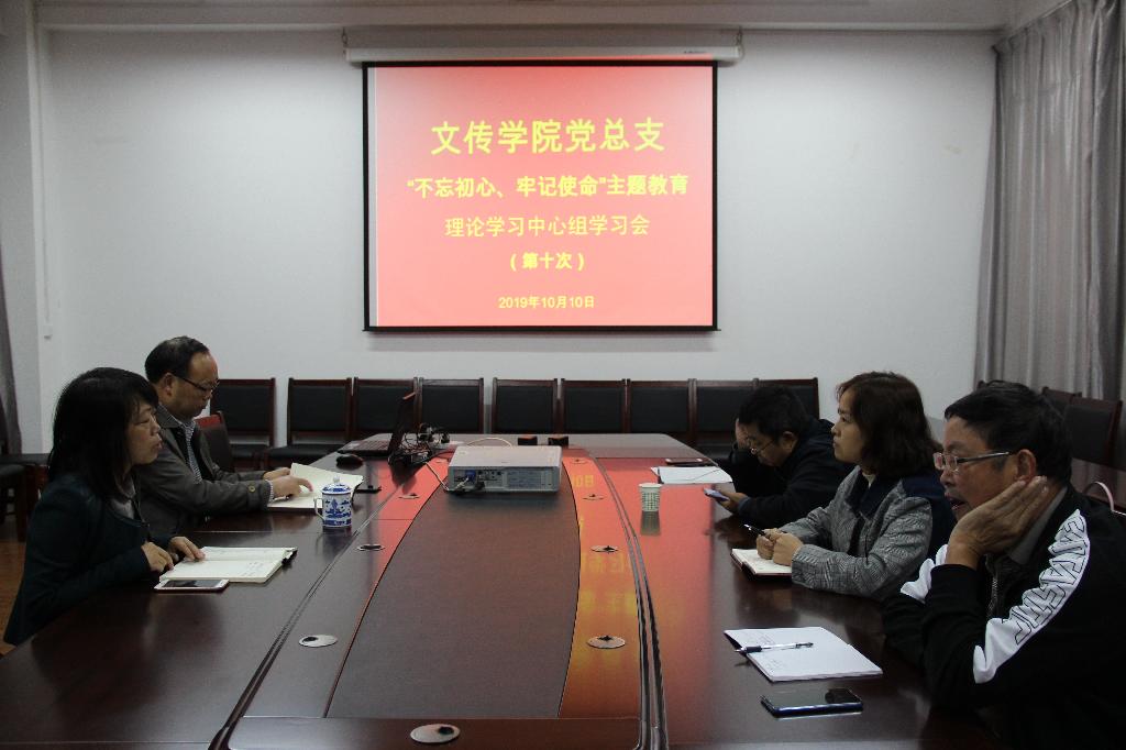 10月10日下午,伟德国际1949理论学习中心组在陕南民间文化研究中心会议室召开第十次“不忘初心、牢记使命”主题教育学习研讨会,党总支书记于咏梅主持学习会,中心组成员参加学习。