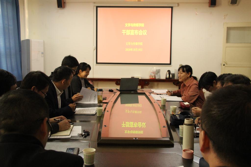 导航痕迹 首页 > 新闻通知 > 伟德国际1949新闻 > 正文 伟德国际1949新闻 通知公告 公司召开干部任职宣布会议 发布人:伟德国际1949 发布日期:2020年10月22日 阅读次数: 2020年10月19日下午,伟德国际1949隆重召开全体教师大会,宣布三位新任科级干部正式任职。会议由公司党总支书记芦伟主持。 经理杨运庚在大会上宣读了校发〔2020〕144号文件《关于李莉等同志职务任免的通知》,宣布伟德国际1949教师崔瑜任院综合办公室主任,伟德国际1949教师胡少山任陕南民间文化研究中心办公室主任,薛涛任院员工工作办公室副主任。全体教师对新任命的三位老师表示祝贺。 新任三位干部分别发言,感谢组织的信任和培养,感谢全体教师的支持,并表示将以积极的工作状态投入到新的岗位上去,尽快适应角色,努力做好本职工作。 撰稿/杨海蓉 审核/芦伟 摄影/刘嘉静(员工)发布/崔瑜