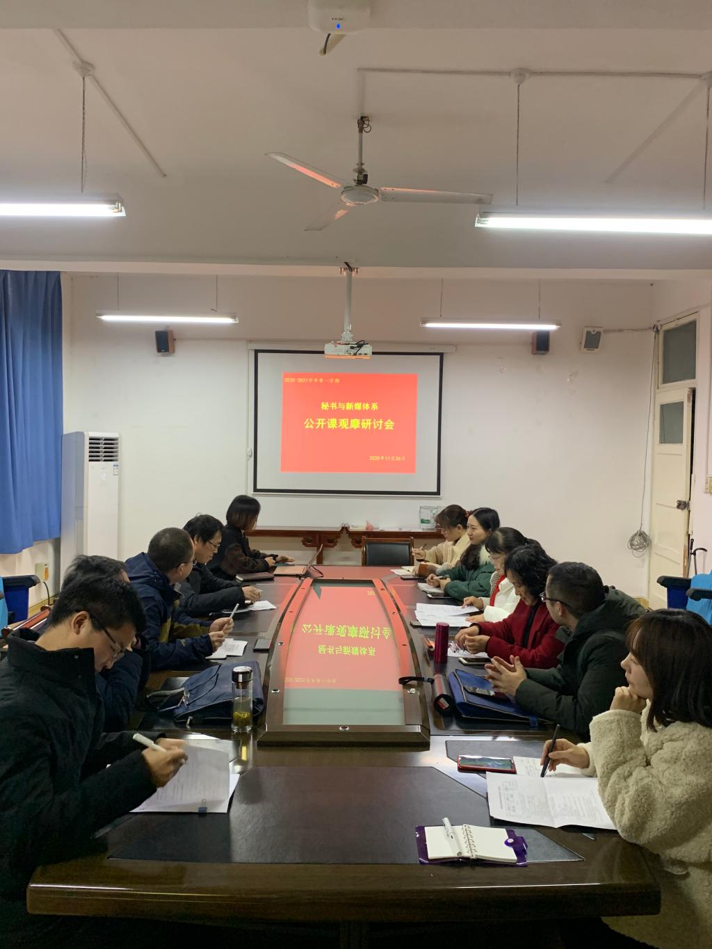 2020年11月23日至26日,秘书与新媒体系举办了2020—2021学年第一学期公开课观摩研讨会。公司领导、各系主任、院教学督导、秘书与新媒体系全体教师和公司其他无课老师参加了观摩探讨会。观摩研讨会由秘书与新媒体系主任谭诗民负责组织实施。