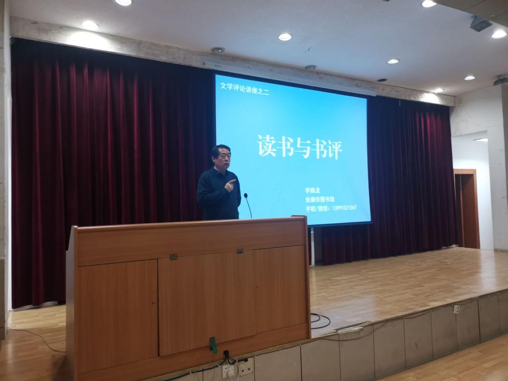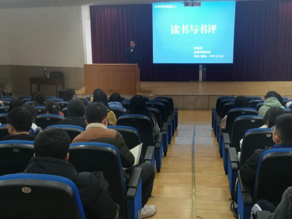 1月4日晚上,安康市图书馆馆长李焕龙应伟德国际1949邀请,在江南1号楼报告厅,为汉语言文学专业2020级四个班的员工讲授“文学评论的写作”一课,基础写作课教师韩文霞全程参与。