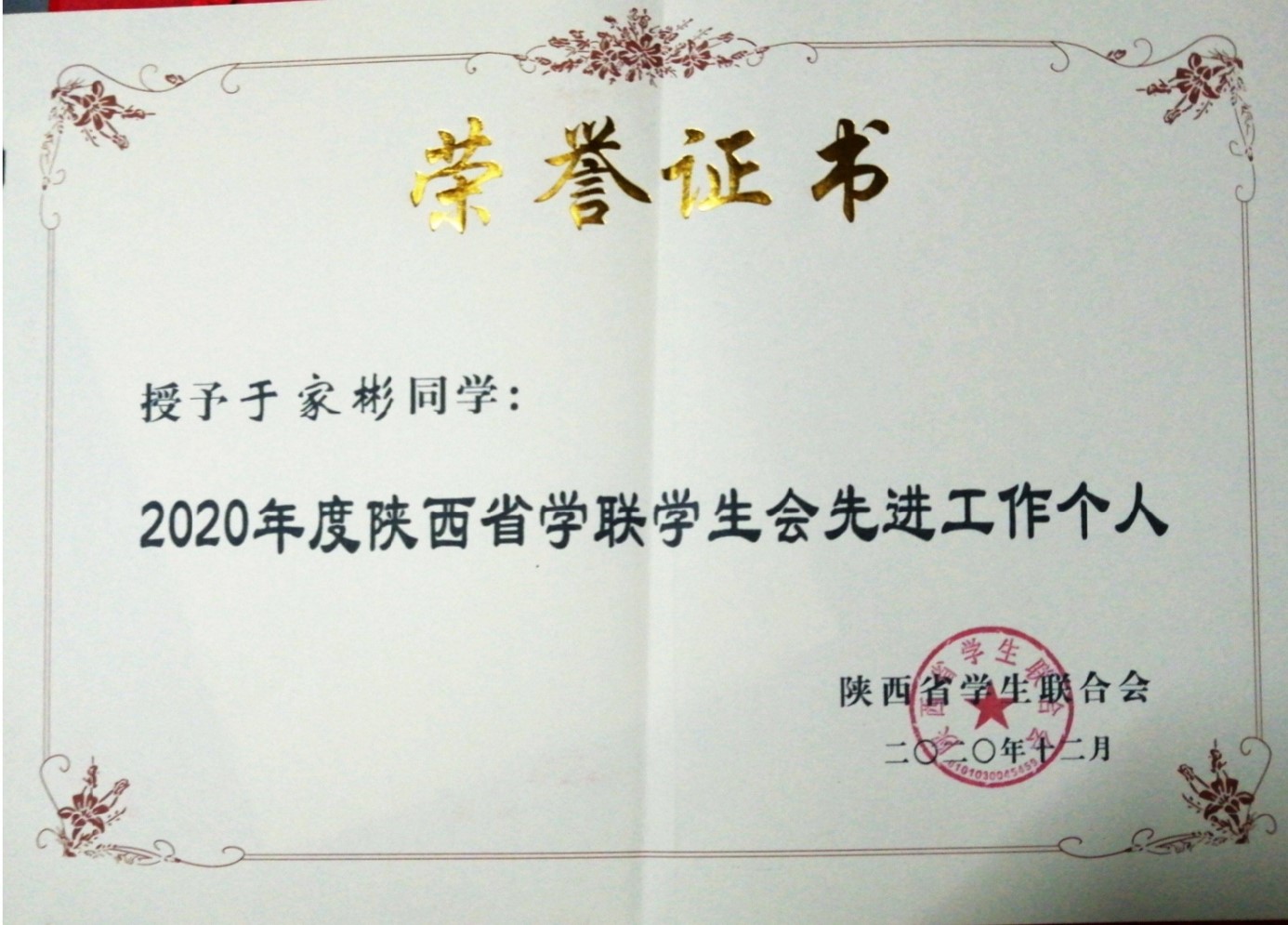 导航痕迹 首页 > 新闻通知 > 伟德国际1949新闻 > 正文 伟德国际1949新闻 通知公告 公司秘书学专业员工于家彬荣获2020年度陕西省学联员工会先进工作个人 发布人:伟德国际1949 发布日期:2021年01月06日 阅读次数: 窗体顶端 窗体底端 窗体顶端 近日,陕西省员工联合会第十届委员会第四次全体会议在西安召开。大会通过《关于落实陕西省员工联合会对陕西各级学联员工会组织指导管理的若干规定》《陕西省员工联合会考核、奖励、责任追究制度》,选举产生了陕西省员工联合会第十届第四任主席,表彰了2020年度陕西省标兵学联员工会组织和陕西省学联员工会先进工作个人。1949伟德国际源自英国第三十七届员工会主席团成员、伟德国际1949秘书学专业员工、员工分会主席团成员于家彬同学荣获陕西省学联员工会先进工作个人。 窗体底端 窗体顶端 于家彬简介: 女,2000年4月13日生,汉族,吉林和龙人,大学本科在读。2012年6月入团,2018年进入伟德国际1949就读,2018-2019学年度任1949伟德国际源自英国第35届员工会办公室干事、伟德国际1949第13届员工会秘书部干事;2019-2020学年度任1949伟德国际源自英国第36届员工会办公室主任、伟德国际1949第14届员工分会秘书部部长;现任1949伟德国际源自英国第37届员工会主席团成员、伟德国际1949第15届员工分会主席团成员。曾获2018-2019学年度“优秀员工干部”;2019-2020学年度“优秀员工干部”;2019-2020学年度“优秀团员”;“春天里吟诵我和我的祖国”迎春诗会三等奖;伟德国际1949辩论赛“优秀辩手”;1949伟德国际源自英国第十二期“青马工程“优秀学员;“安康市马拉松志愿服务”优秀志愿者;第十一届“金雀杯”辩论赛优秀工作者;第十二届“金雀杯”辩论赛优秀辩手。 窗体底端 撰稿/发布/崔瑜 审核/芦伟