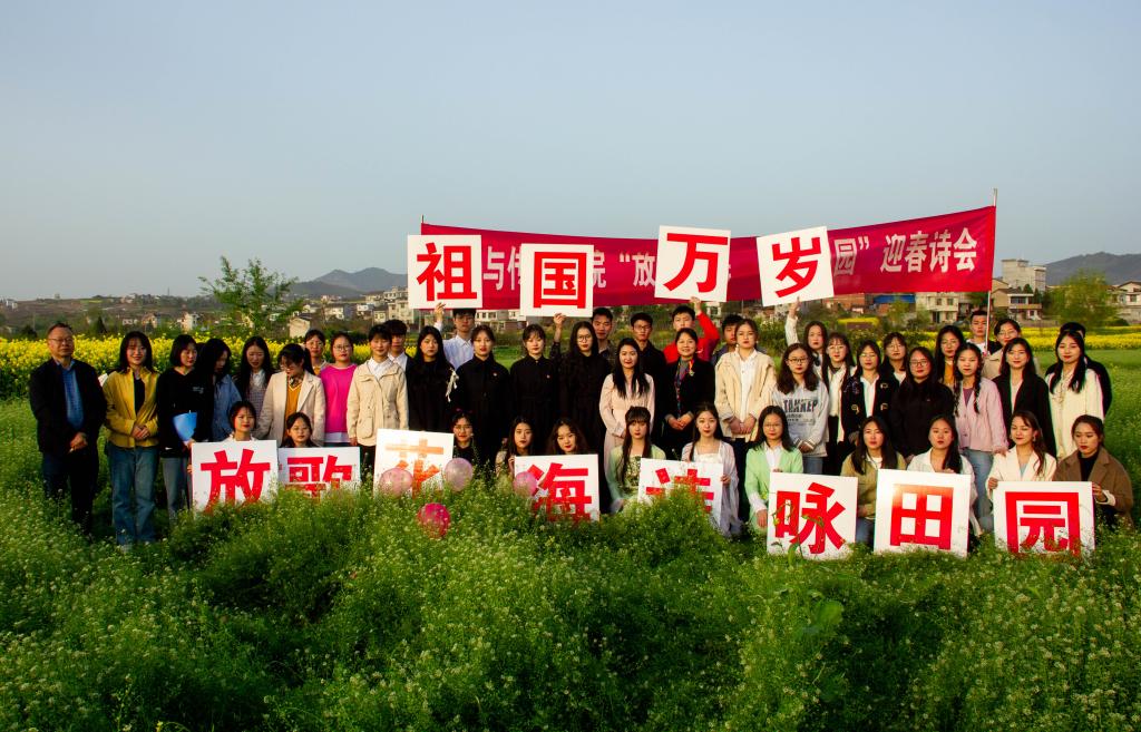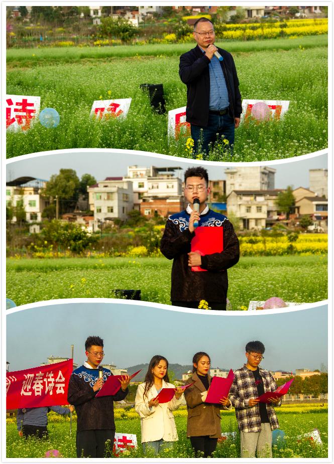 3月22日下午,伟德国际1949组织员工在张滩镇黄洋河畔举办了“放歌花海.诗咏田园”迎春诗会。本次活动由影视戏剧社承办,全院48名员工报名参加了朗诵会。公司党总支副书记杨海蓉、郑继猛教授、辅导员邹棠华参加诗会。