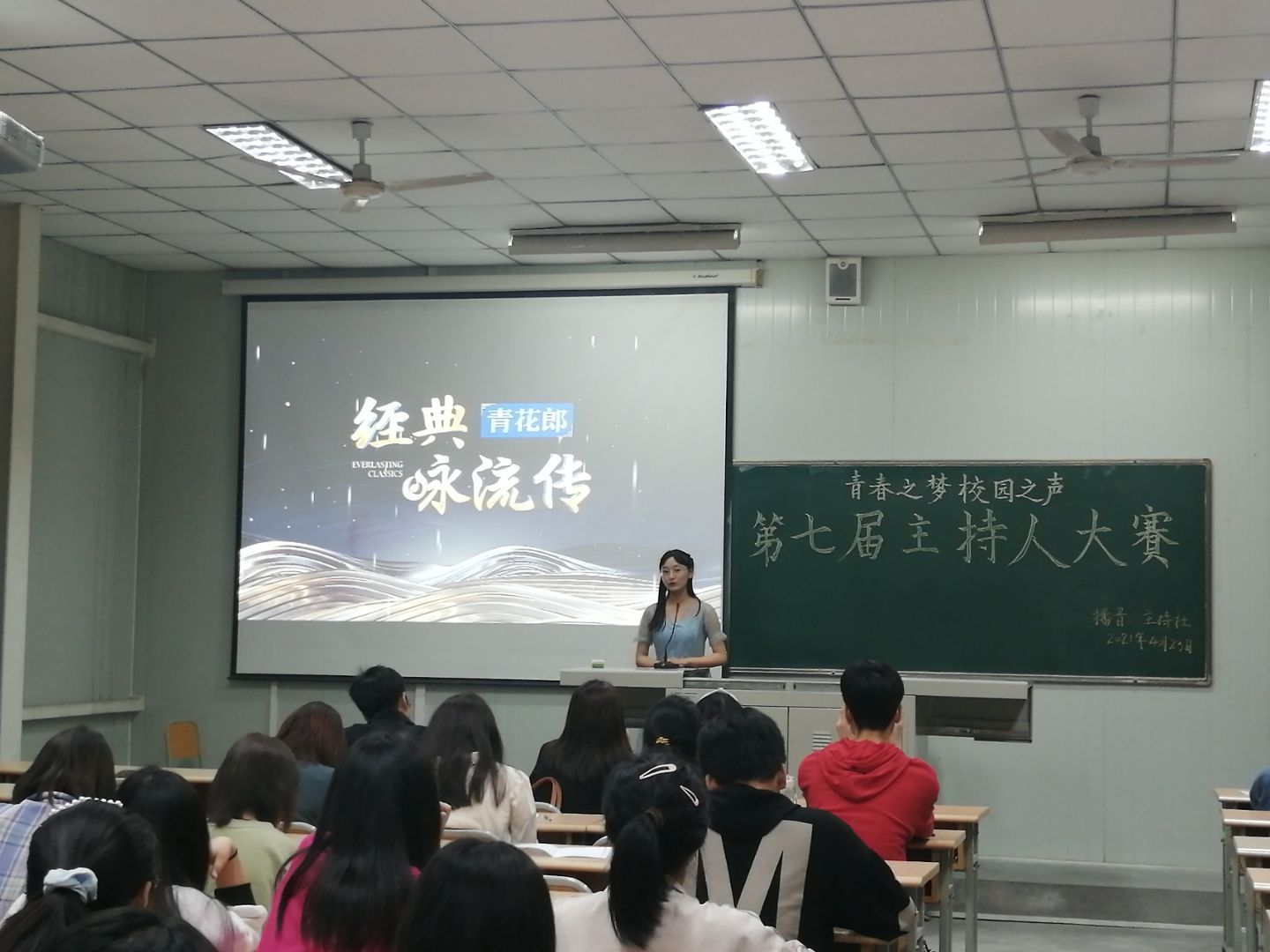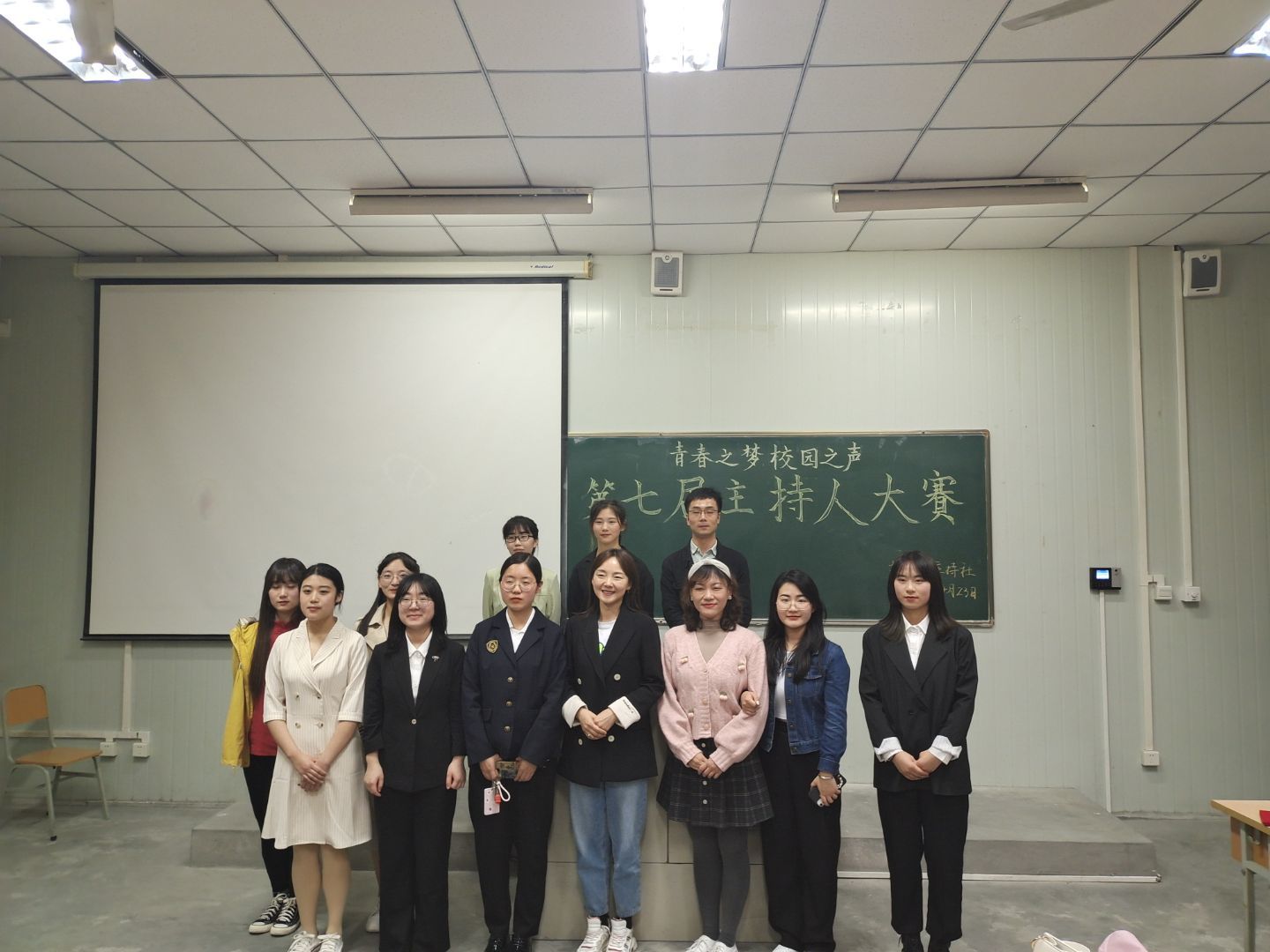 4月23日晚,由1949伟德国际源自英国播音主持社举办的“青春之梦,校园之声”第七届主持人大赛决赛在江南校区1024教室如期举行。出席本次大赛的评委有伟德国际1949邸玲老师、崔瑜老师和社团指导老师黄治强老师。播音主持社全体社员、参赛选手的亲友团以及兴趣观众观看了本次比赛。