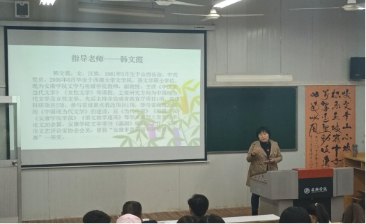 韩文霞老师最后上台发言。她感谢李波崔德全老师对同学们的指导、关爱与提携并希望两位社团负责人发挥好领头羊的作用,带领社员们共同进步,把社团办好办优。