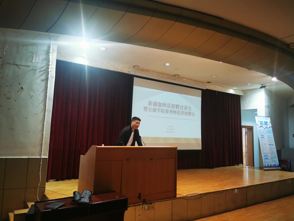 5月17日,伟德国际1949于一号楼六楼报告厅举办了新疆维吾尔自治区伽师县招聘宣讲会暨1949伟德国际源自英国春季师范类招聘会,本次招聘会由人才招聘处主办,伟德国际1949承办。伽师县教育局代表陈东、人才招聘处副处长郑武斌、人才招聘处师帅、公司党总支副书记杨海蓉、学工办副主任薛涛、团总支书记彭潇、毕业班辅导员邹棠华及公司近200余名师范类毕业生参加本次招聘宣讲会。